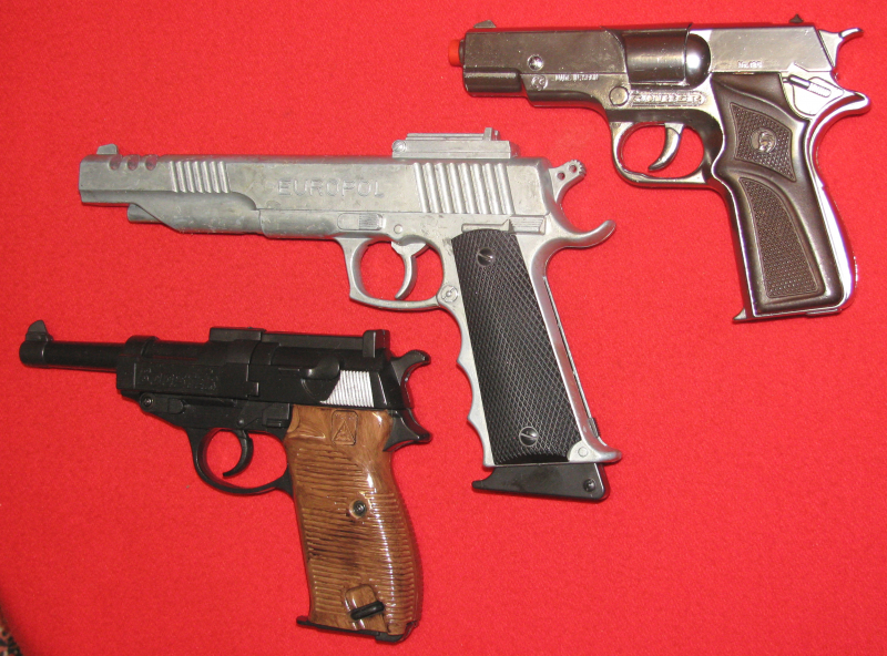 Zum Verkauf kommen 3 Pistolen, eine für Zündplättchen die anderen wohl nur Peng-Peng