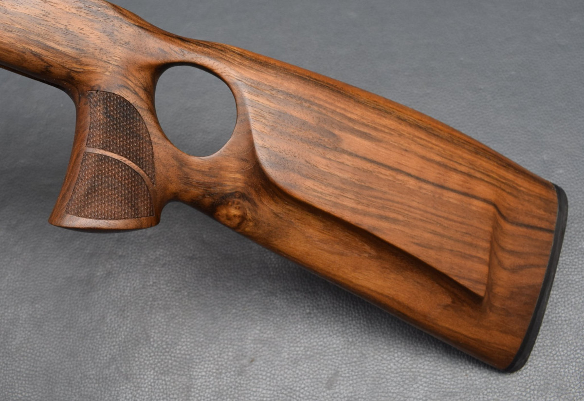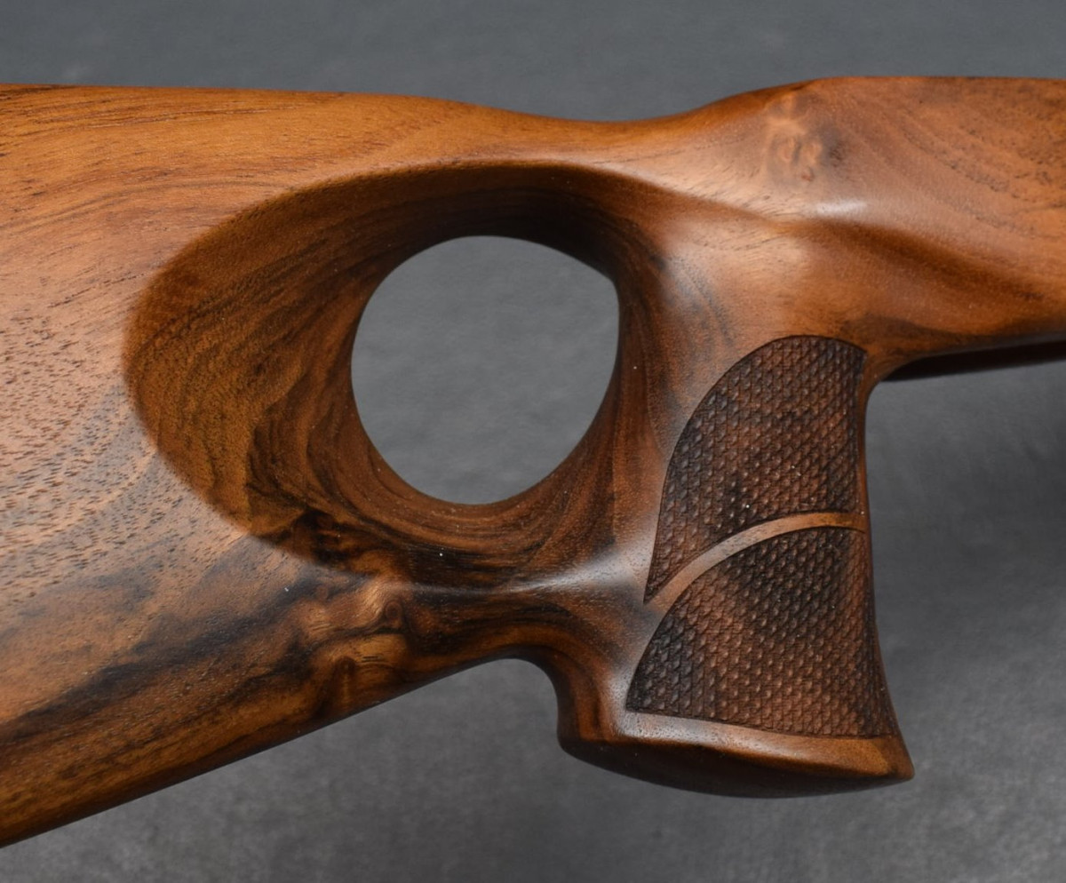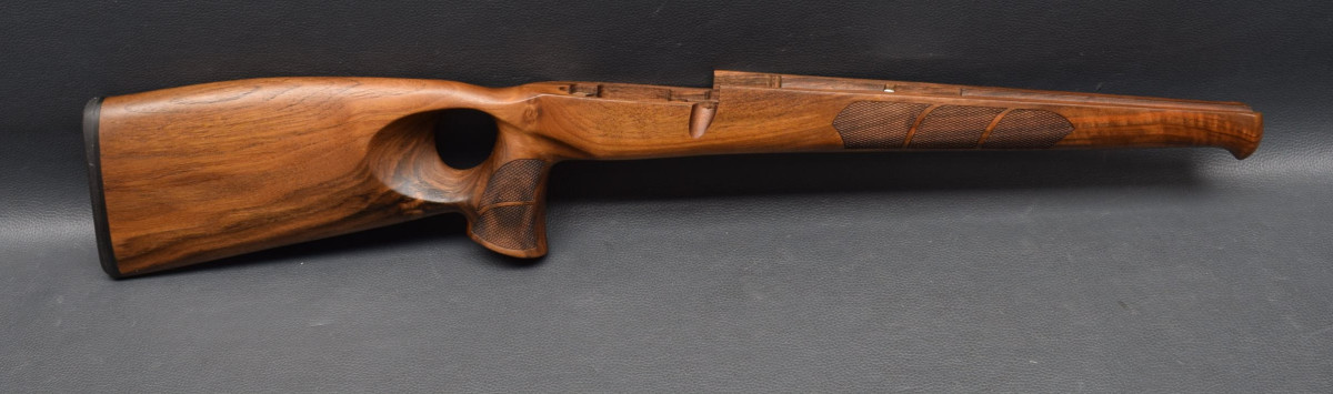 Als Ersatz für den Original Schaft, für Standardsysteme mit 115mm Systemschraubenabstand In neuem attraktiven Design, einfacher Austausch gegen den Original Schaft, Nußbaum-Holzschaft mit Backe im Rigby Style, ,Old english Gummischaftkappe, Schraubenbohrungen mit Alubuchse, Laufblocklager in ALU. Abstand der beiden Bohrungen für Systemschrauben am Abzugsbügel 115mm Laufrinne für passend für Läufe mit maximal 19 mm Außendurchmesser Am Pistolengriff und Vorderschaft mit griffiger Fischhaut. Neuware Hier HK III, original Foto, weitere Holzklassen in unseren anderen Auktionen.