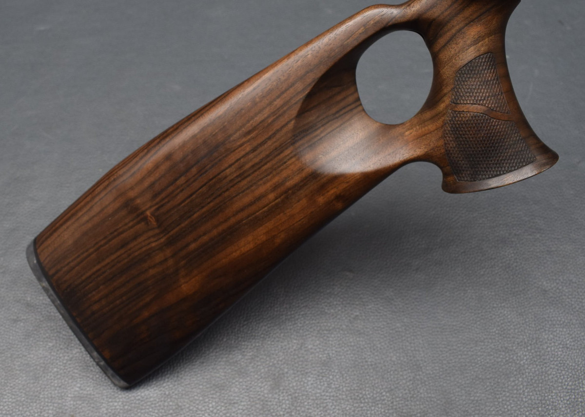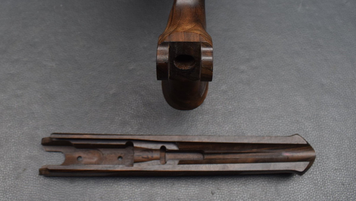 Nußbaum-Holzschaft mit bayrischer Backe , ausgeprägtem Kaisergriff, Old English Gummischaftkappe . Passend ausgefräst für Standardläufe. incl. Befestigungsschraube. Am Pistolengriff und Vorderschaft mit griffiger, in der Mitte 1x unterbrochenen Fischhaut.