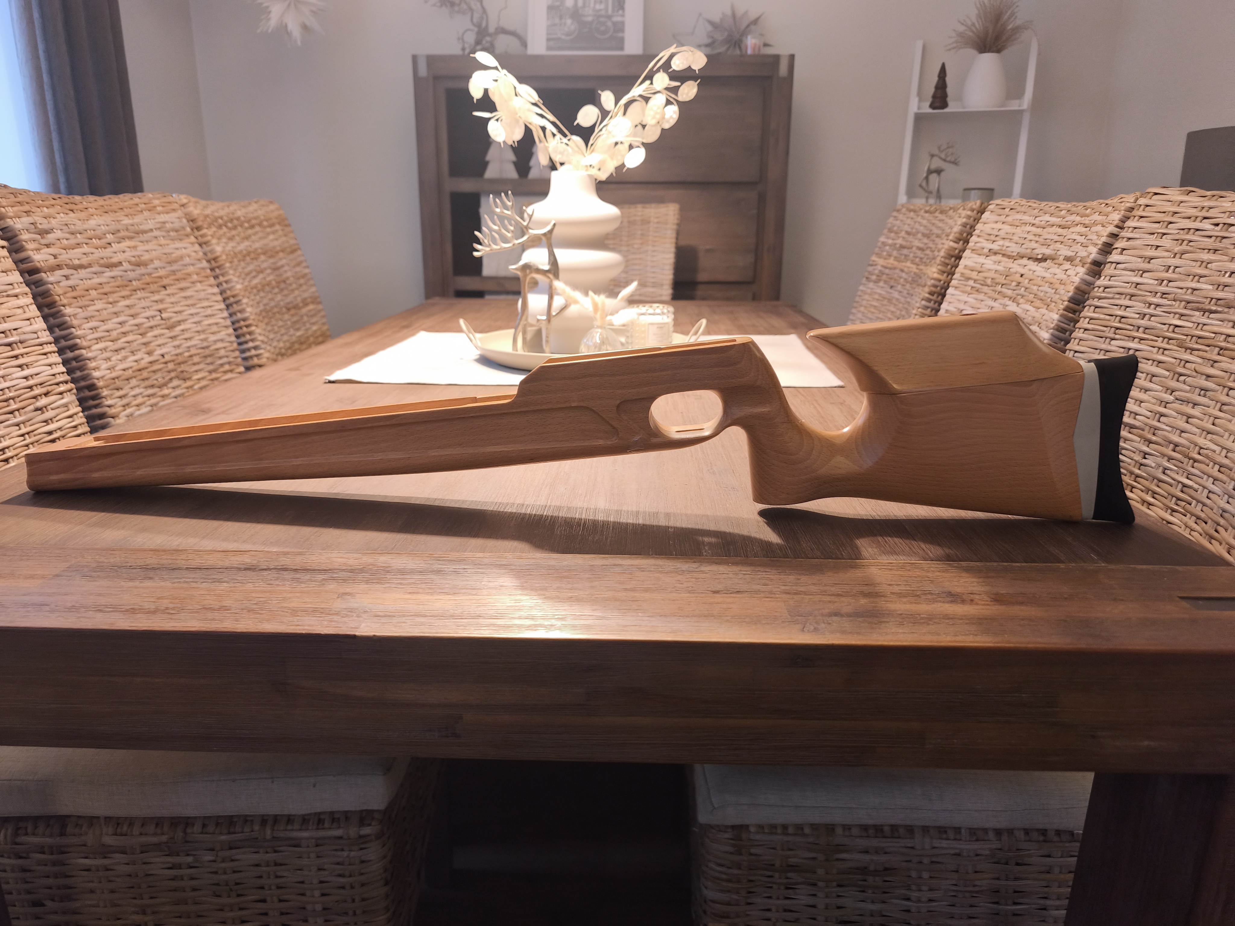 Lieferumfang: Ausschließlich der Holzschaft, ohne das Waffensystem (Lauf, Mechanik, Abzug etc.) und ohne Schaftkappe.
