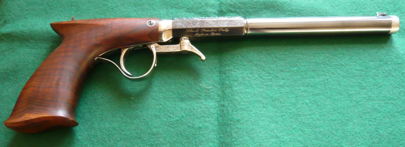 Zum Verkauf steht eine gebrauchte, jedoch gepflegte und in gutem Zustand befindliche Unterhammerpistole des Herstellers "Barlow" im Kaliber .40. Die Waffe ist zwar schon älter und zeigt Gebrauchsspuren - siehe Bilder, insbesondere ist vorne an der Mündung durch Verwendung einer Ladehilfe die Brünierung abgenutzt. Der Lauf ist einwandfrei und blank. Auf Wunsch und gegen geringen Aufpreis können Ladewerkzeuge dazu erworben werden (Pulvertrichter sowie Putz- und Ladestock).
