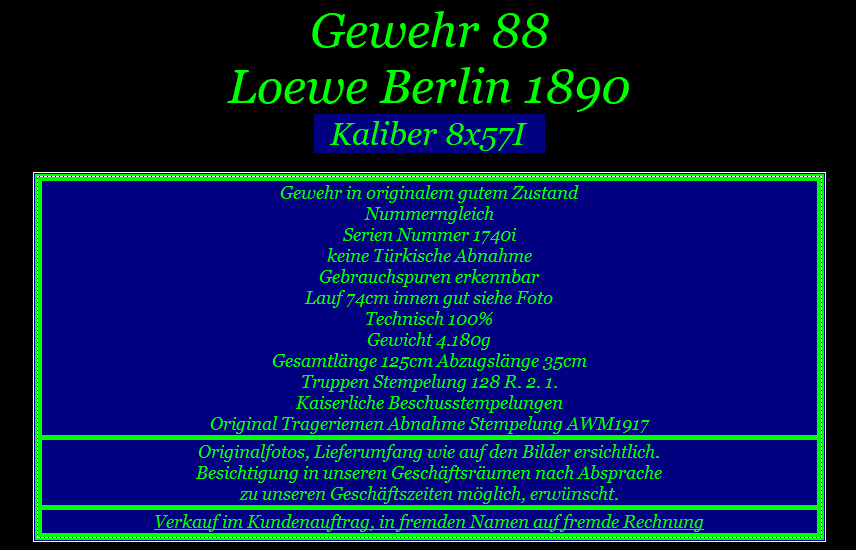 Bei der angebotenen Ware handelt es sich um eine gebrauchte Waffe, die einen historischen Wert als Sammlerstück hat und zudem als Antiquität zu bezeichnen ist.