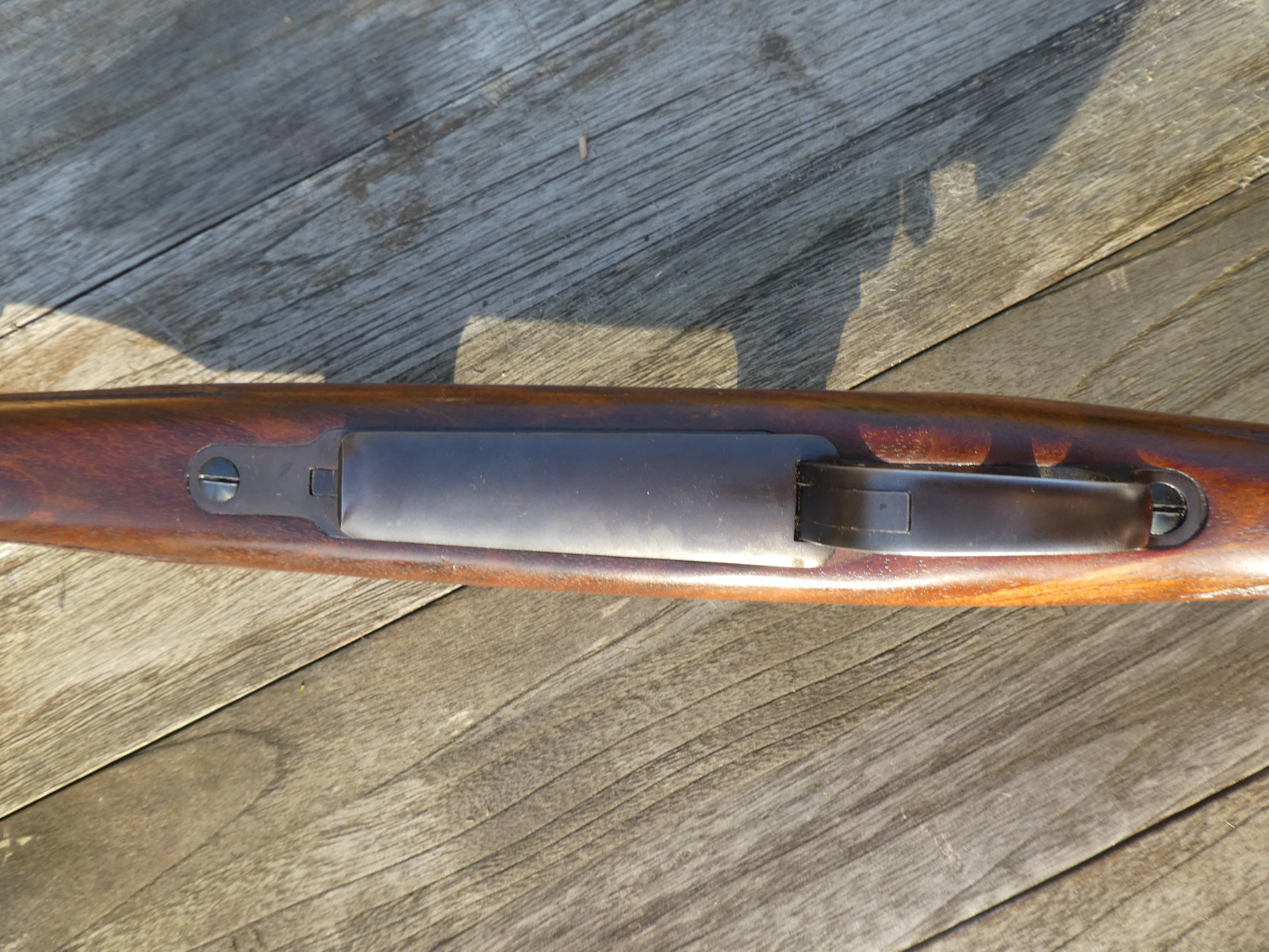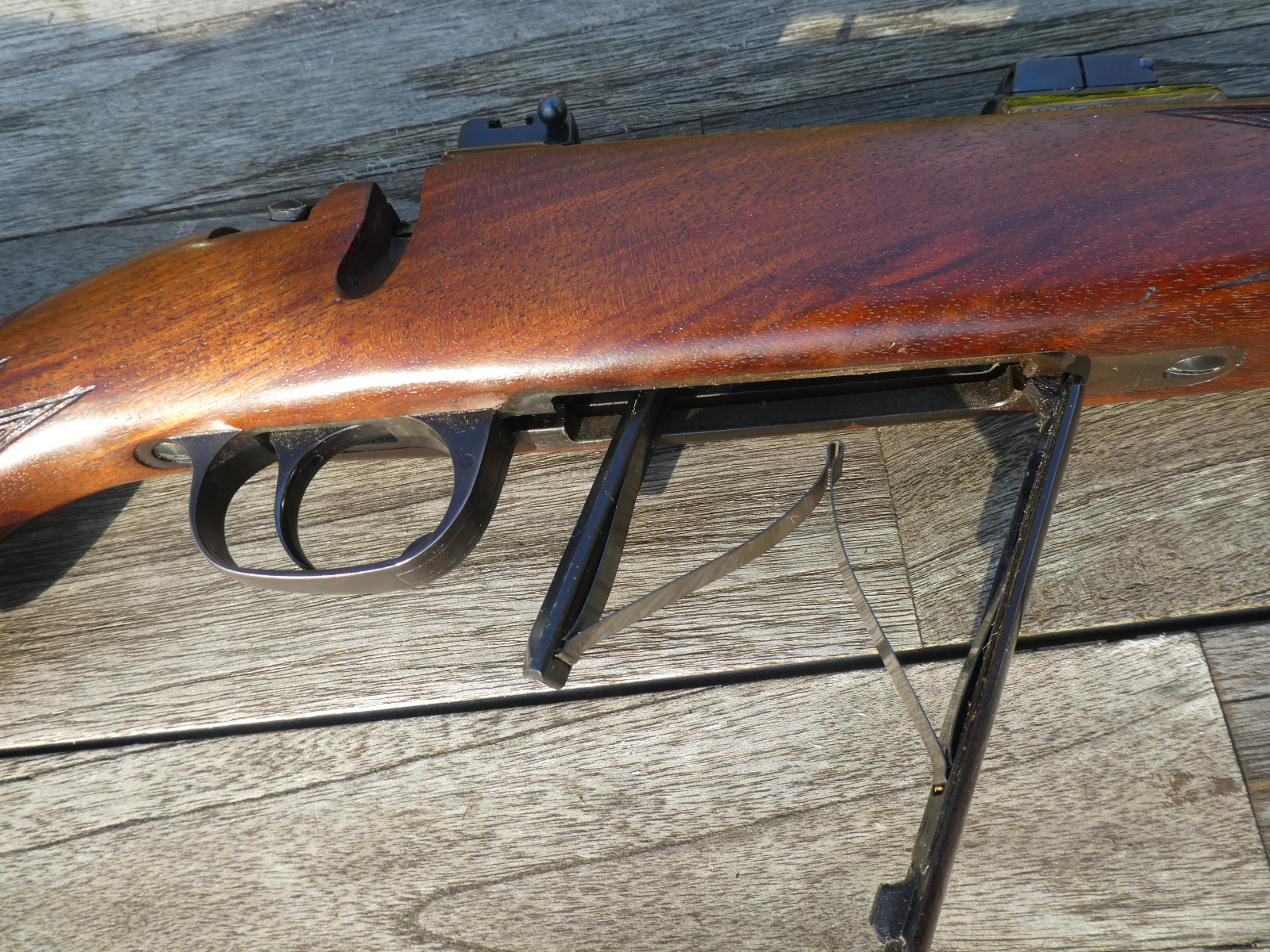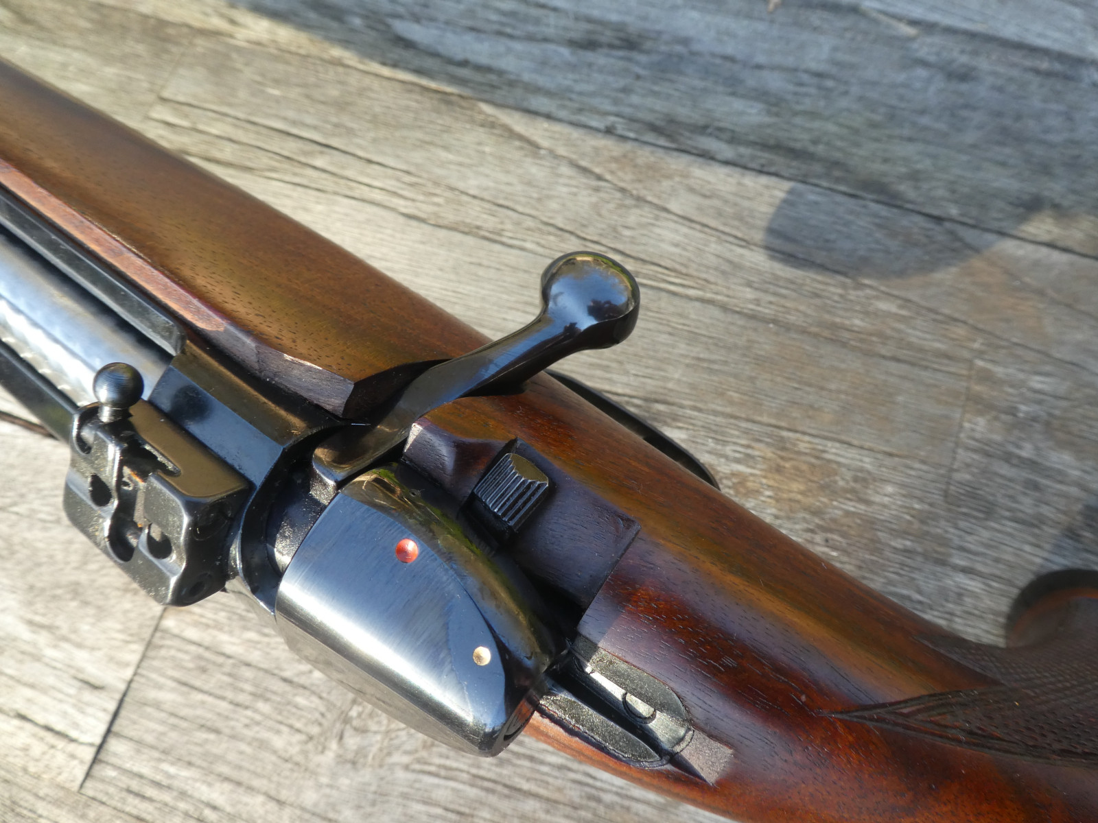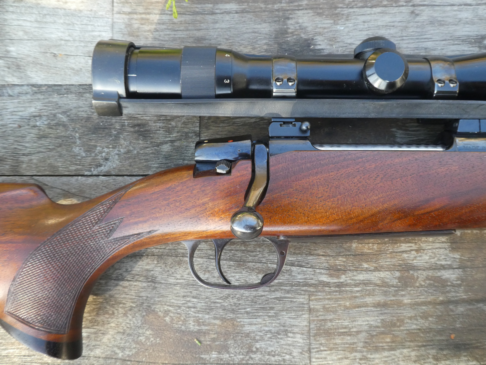 Abzug funktioniert als Rückstecher, Waffe in einem für das Alter tadellosen Zustand, sowohl optisch als auch technisch. Auf einer Schwenkmontage ist ein Zeiss VZF 1,5-6x42-: , Absehen 4 Glas montiert.