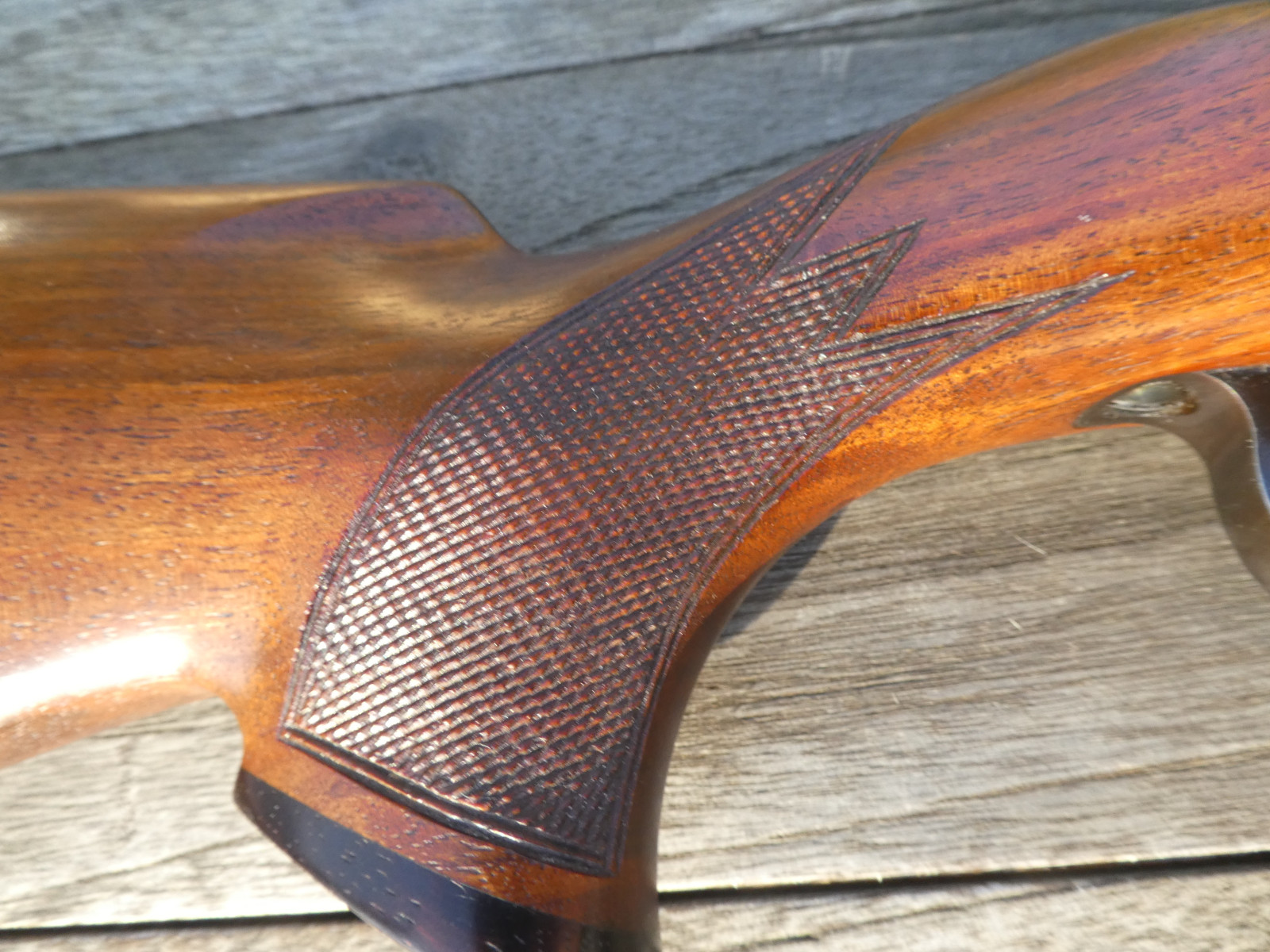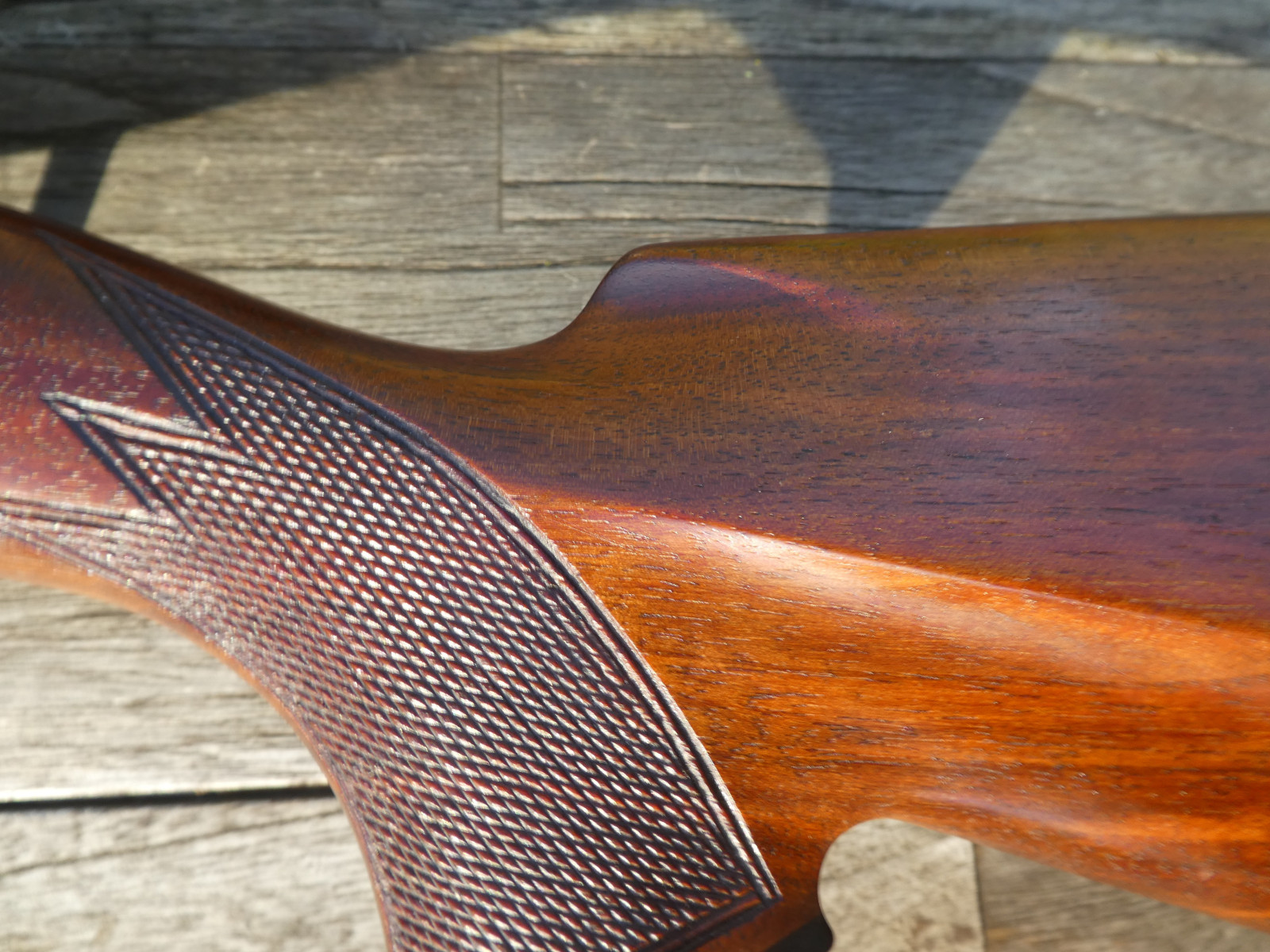 Waffe hat eine sehr schöne Maserung, Lauf ist spiegelblank.
