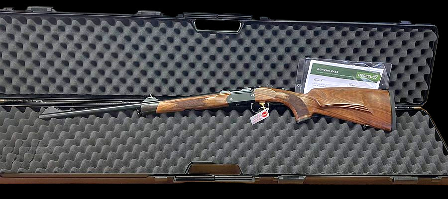 Wir bieten hier eine neue Merkel Kipplaufbüchse K5 Black an – die neueste Generation der eleganten, extrem führigen und technisch ausgereiften Kipplaufbüchsen aus Suhl. Eine ideale Wahl für anspruchsvolle Jäger, die Wert auf geringes Gewicht, höchste Präzision und hochwertige Verarbeitung legen.
