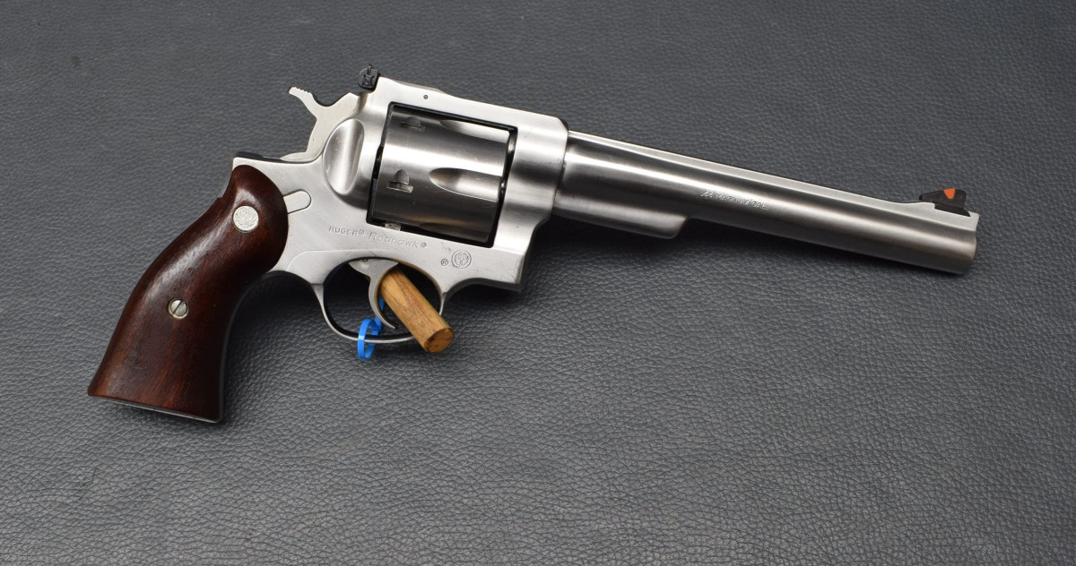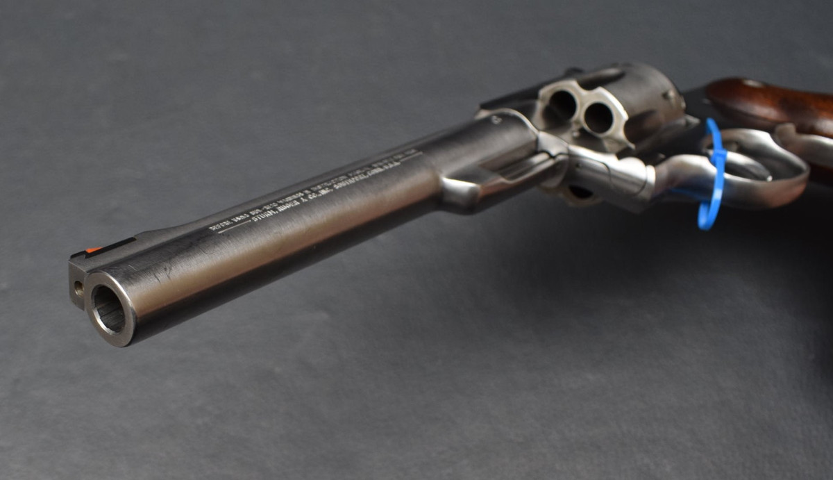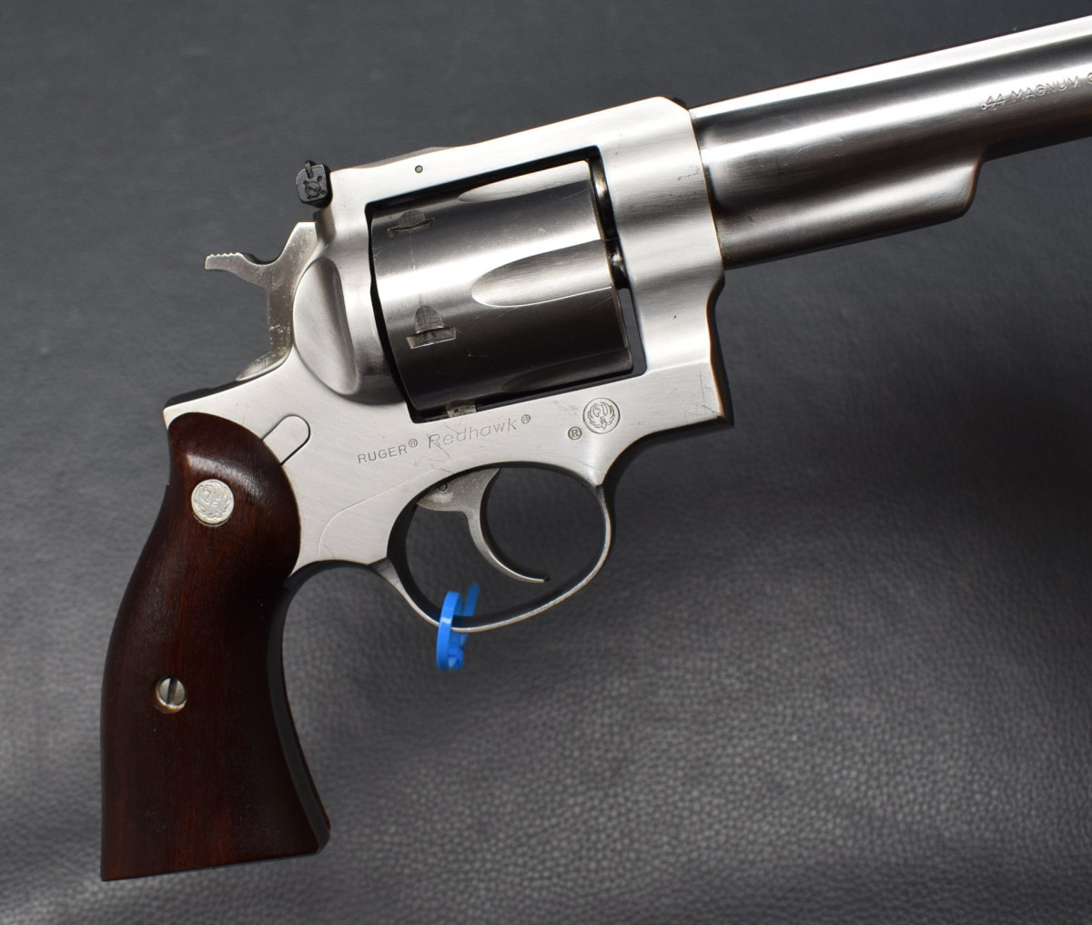 Holzgriffschalen mit Ruger Logo. Lauf und Trommelbohrungen sehr gut, Oberfläche 97%