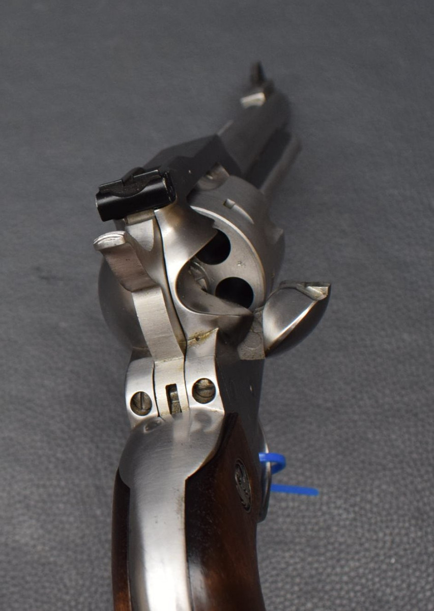 schwerer SAA Revolver mit 6,5" Lauflänge, Korn verstiftet, verstellbarer Micrometervisierung,