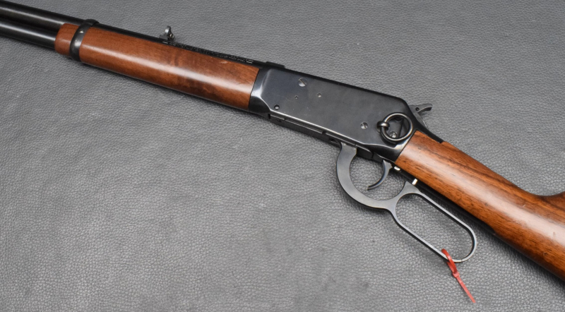 40 cm brünierter runder Lauf, brünierter Stahl Systemkasten, Buckhorn Visierung, Direktabzug, seitliche Druckkopfsicherung, außenliegender Hahn, Magazinrohr unter dem Lauf, Sattelring.