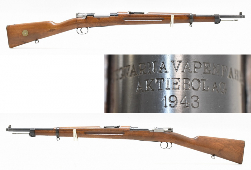 Nummerngleicher schwedischer Militär - Karabiner M/38 " Gevär m/38 " aus Produktion der Husqvarna Vapenfabriks Aktiebolag des Jahres 1943. Leicht matter Lauf. Mellrichstädter Beschuß 1982. Frankonia Vertriebsstempel. Metallteile mit beriebener Brünierung. Details siehe Bilder.