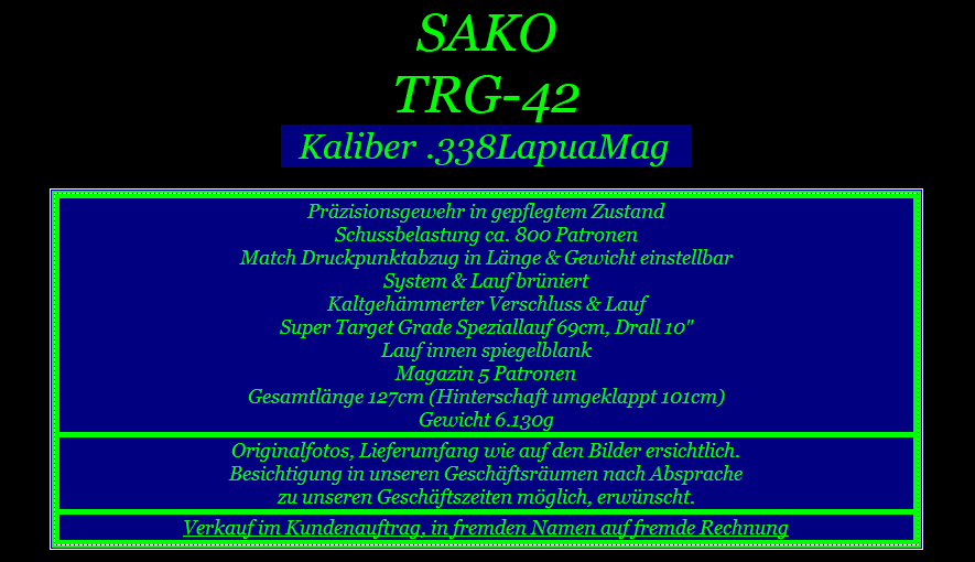 Versand ins Ausland möglich, anfallende Kosten & Gebühren trägt Käufer. Anbieter dieser Auktion: Waffen Lachenmaier GbR, Entengasse 5, 76275 Ettlingen