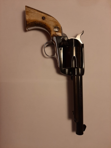 Der Sauer & Sohn Western Six-Shooter in .357 Magnum ist ein klassischer Single-Action-Revolver im Western-Stil, der dem Colt Single Action Army (SAA) nachempfunden ist, aber von J.P. Sauer & Sohn hergestellt wurde, oft mit 6,5-Zoll-Lauf, 6-Schuss-Trommel, brünierter Oberfläche und Holzgriffschalen, bekannt für gute Verarbeitung, angenehmes Schussverhalten und als zuverlässige Gebrauchtwaffe für den Western-Schießsport