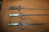 an einem ist die Klinge vorne abgebrochen ,ohne Scheiden , Rostig usw... sonstiger Zustand siehe Bilder,