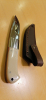 Aus der bekannten Fixed Blade Sammlung von Björn geht es weiter mit dem handgemachten Halbintegral mit Tappered Tang (abnehmenden Erl) und harten Kunstharzgriff. Dieses exklusive Jagdmesser mit der Klinge von Rudolf Weber Hirschkrone, gefertigt in Solingen, Deutschland, besticht durch seine elegante Drop Point Klinge aus hochwertigem Edelstahl mit 7,5 cm Länge und einem makellosen Hohlschliff. Der Handschmeichler-Griff in Creme mit roten Linern sorgt für sicheren Halt und Langlebigkeit, während die Lederscheide für den guten Tragekomfort und Schutz sorgt. Mit einer Gesamtlänge von 17,5 cm ist dieses Unikat, das unbenutzt ist , nicht nur ein praktischer Begleiter, sondern auch ein tolles Sammlerstück für Kenner.
