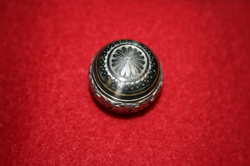 Tierstückgravuren und Anderen je nach Geschmack, nitriert als Rostschutz, poliert. Durchmesser: 24 mm. Zustand: Fabrikneu, Unikat !
