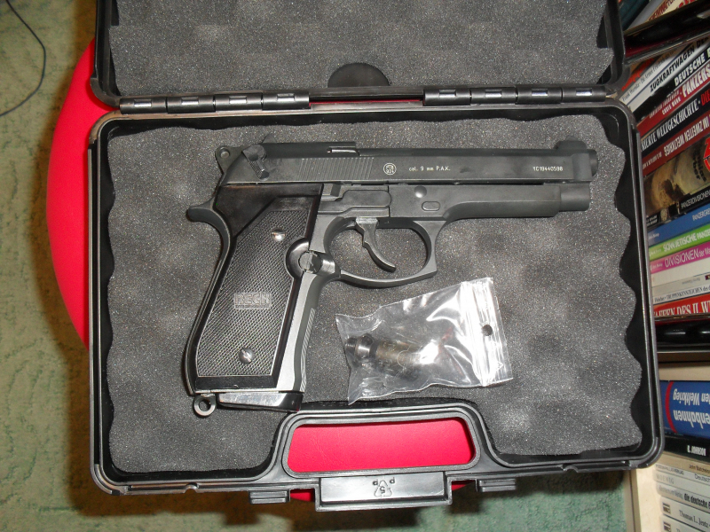 Versteigere aus Sammelauflösung 9 mm PAK RECK MIAMI 92 F . Funktionstest , aus der Waffe wurden nur 3 Probe Schüsse abgegeben.