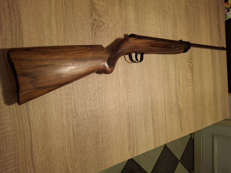 Sammlerluftgewehr - Jung Roland in Luxusausführung sprich Schafftverschneidungen u. Nassaumschafft. Baujahr ca. 1950, glatter Lauf, Kaliber 4,5. Diese Art Luftgewehr waren die Ersten, die nach dem 2. Weltkrieg in Deutschland wieder angeboten worden und deswegen aus meiner Sicht sammelwürdig.