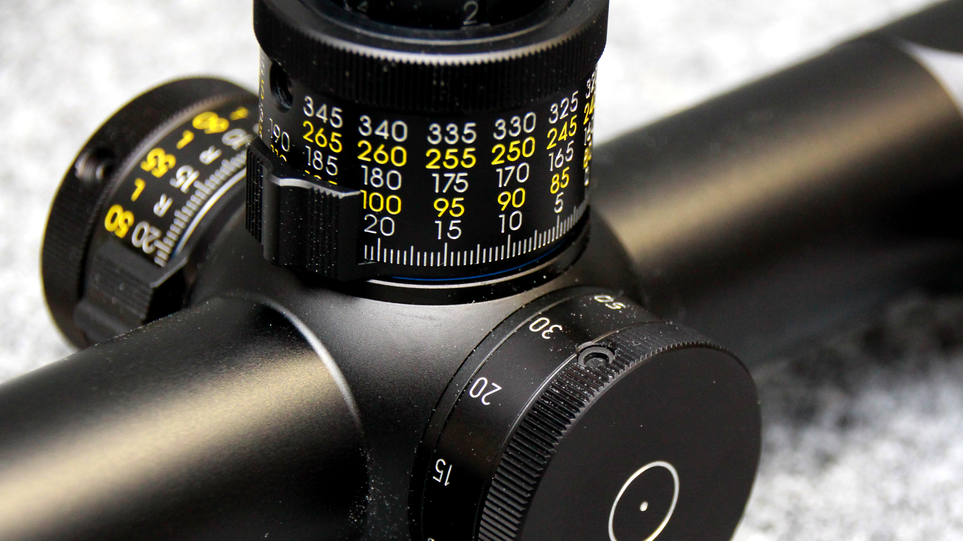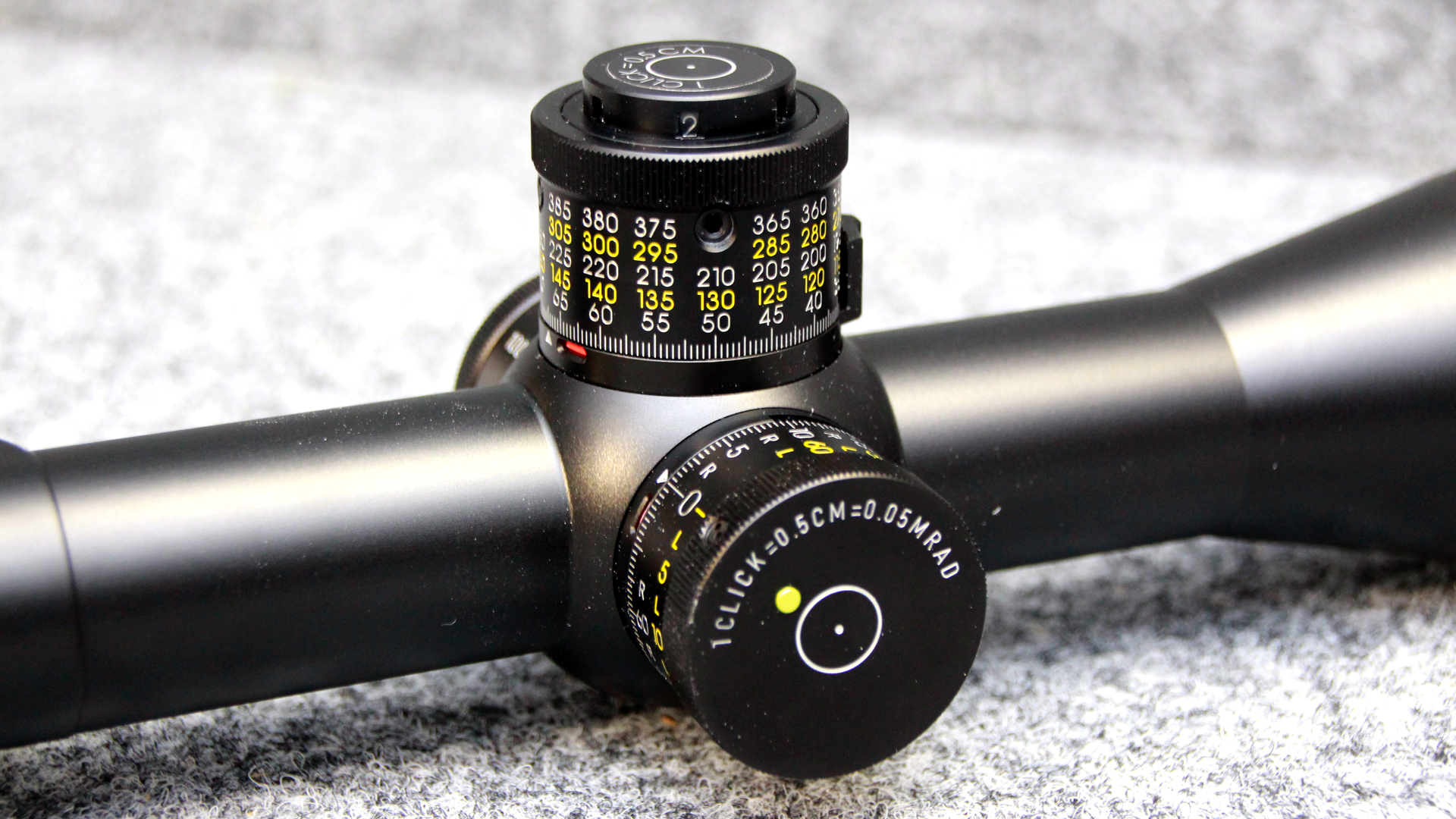 Präzisionstürme (0,5 cm Click): Extrem feine Klickverstellung für absolute Präzision (0,5 cm auf 100 m).