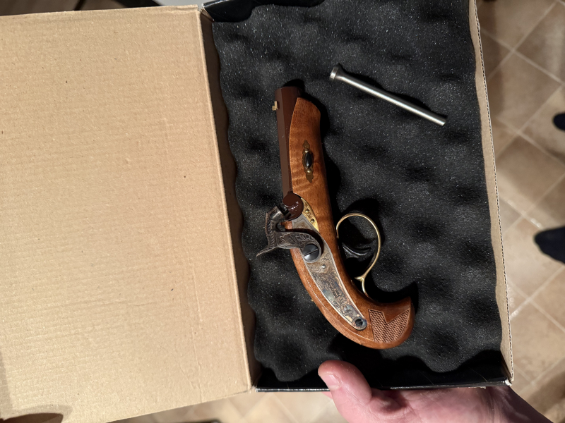 Neuer Pedersoli Phiadelphia Derringer .45. Fabrikneu. Lag nur in der Vitrine. Dazu die Original Schachtel, Anleitung und Pedersoli CD. Vor ca. 2 Jahren bei Frankonia für etwa 530€ gekauft. Optimal als Weihnachtsgeschenk für den Sammler. Wenn die Zahlung vor dem 20.12 erfolgt, kommt die Ware laut DHL noch vor Weihnachten.