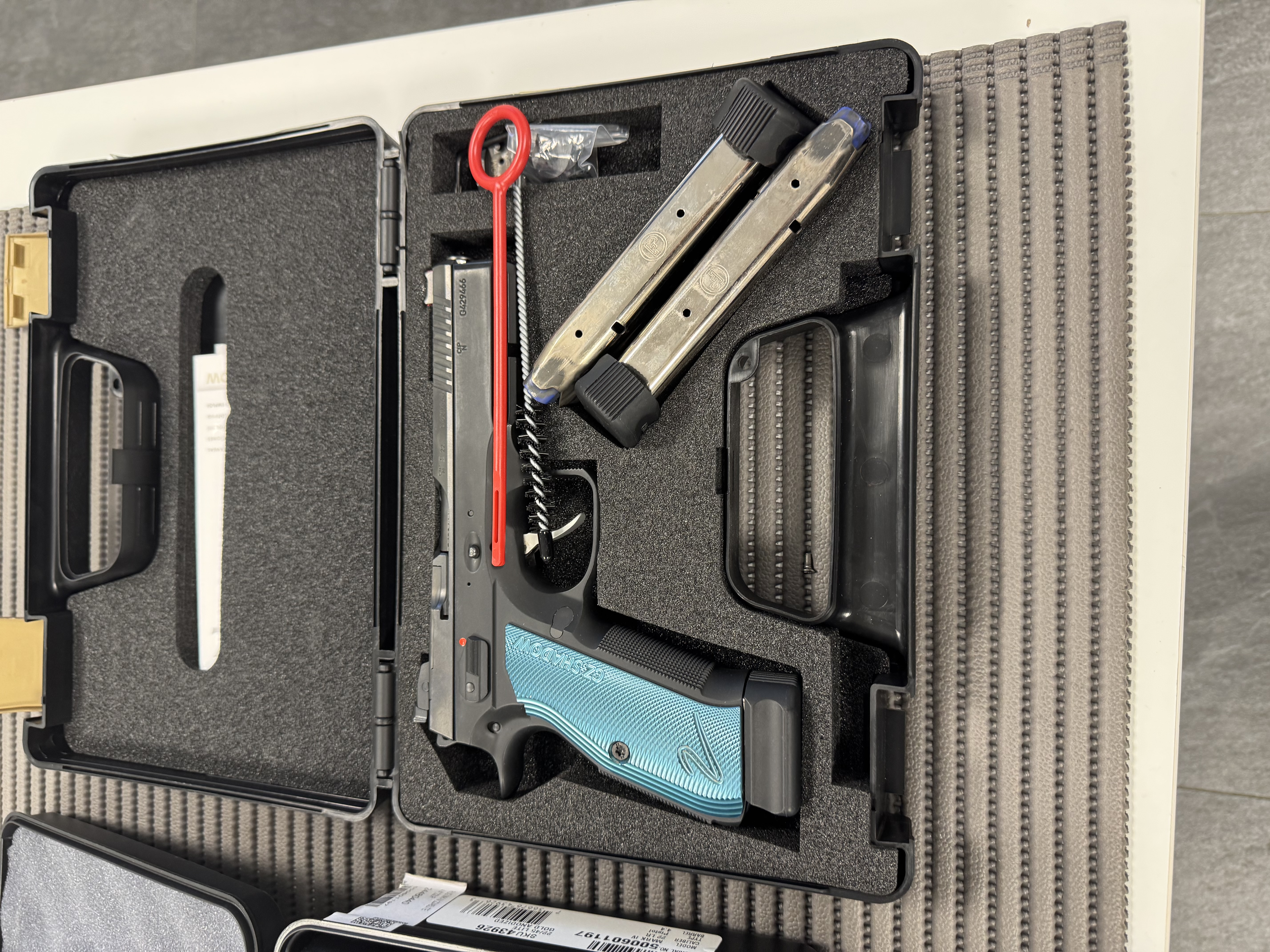 Im Koffer mit allem Zubehör, AdapterPlatte und 3 Magazinen .