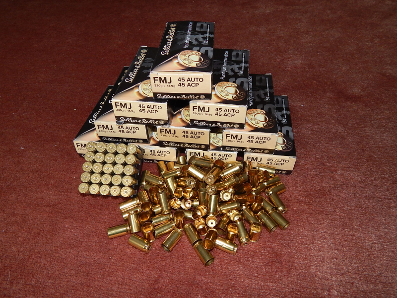 600 Hülsen .45 ACP/ AUTO von S&B. Fabrikmunition, nur einmal geschossen - Boxerzündung.