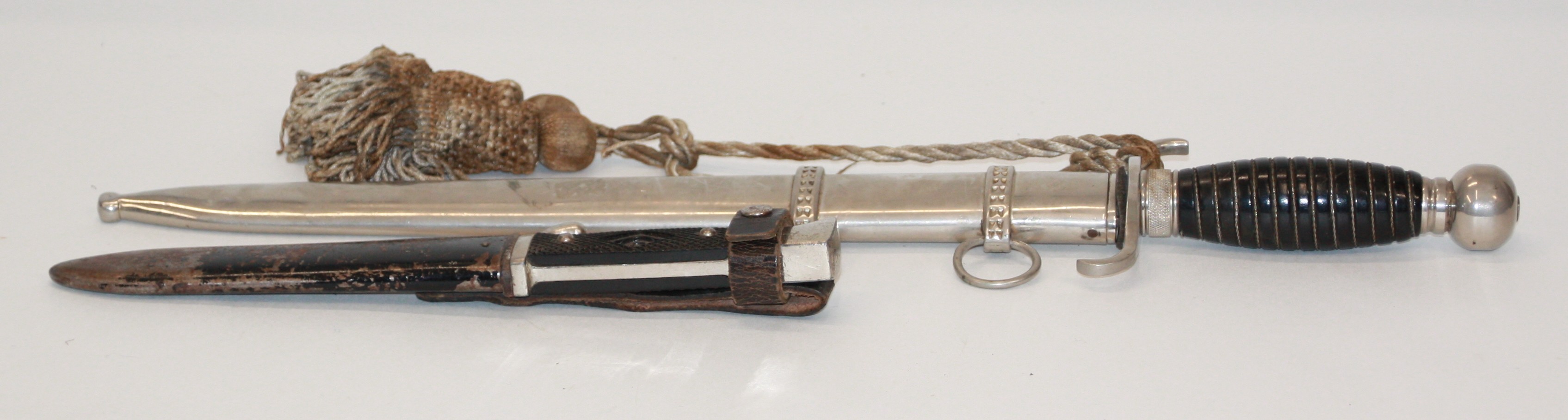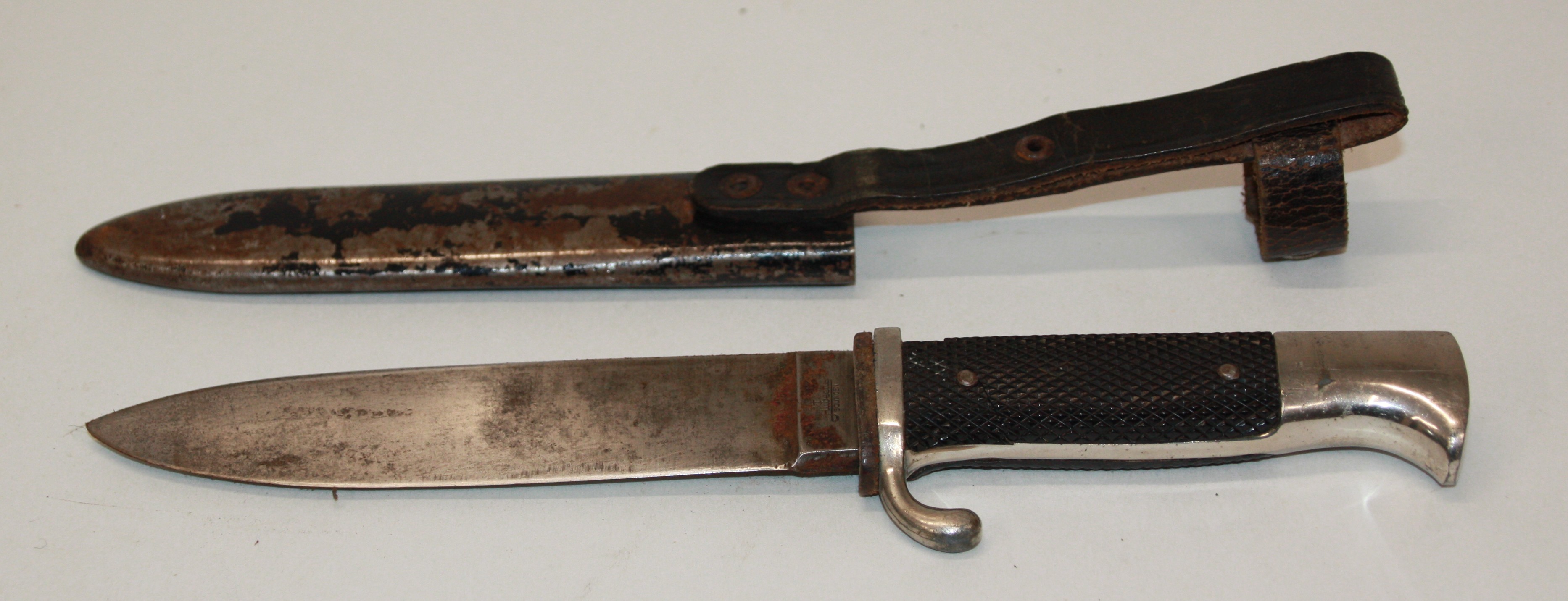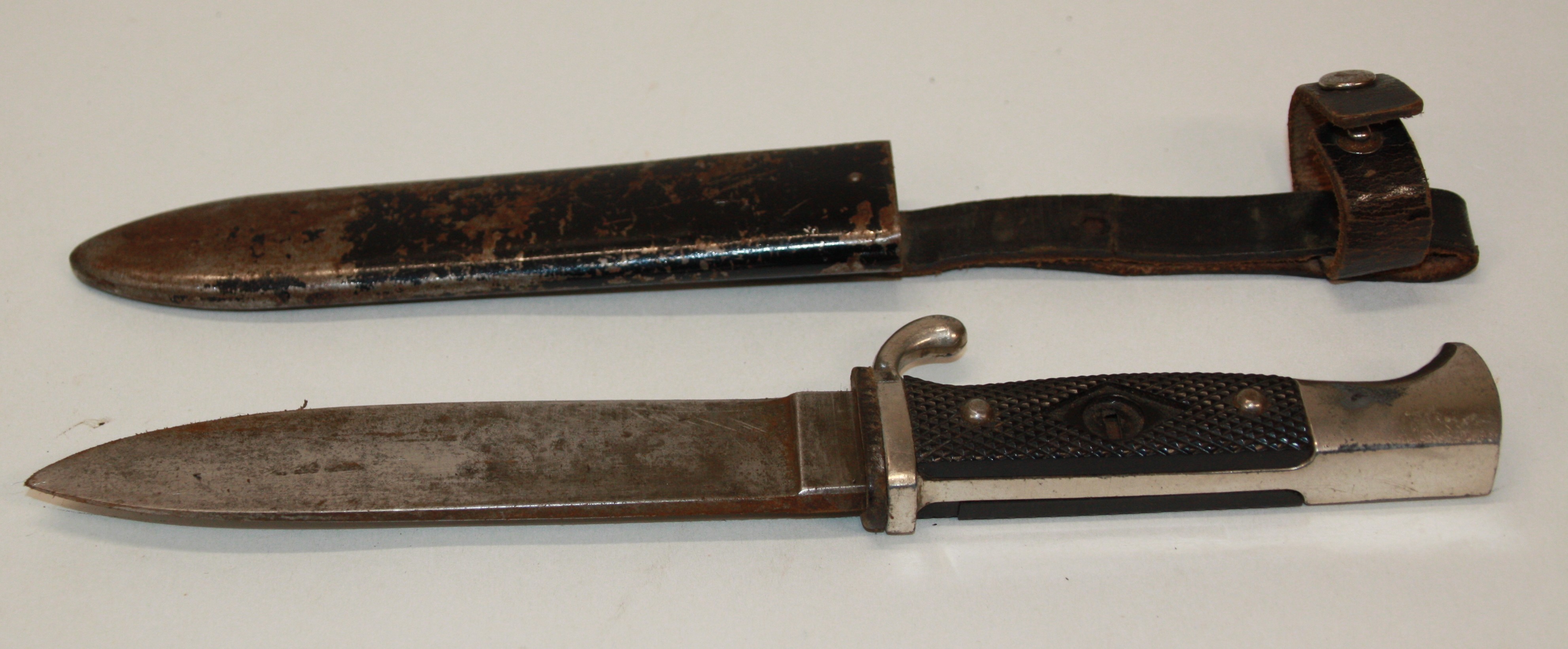 1 x HJ Dolch Entnazifiziert. Hersteller: Hubertus, Solingen. Alters- und Gebrauchsspuren. Total 24,5 cm. Klinge 14 cm.