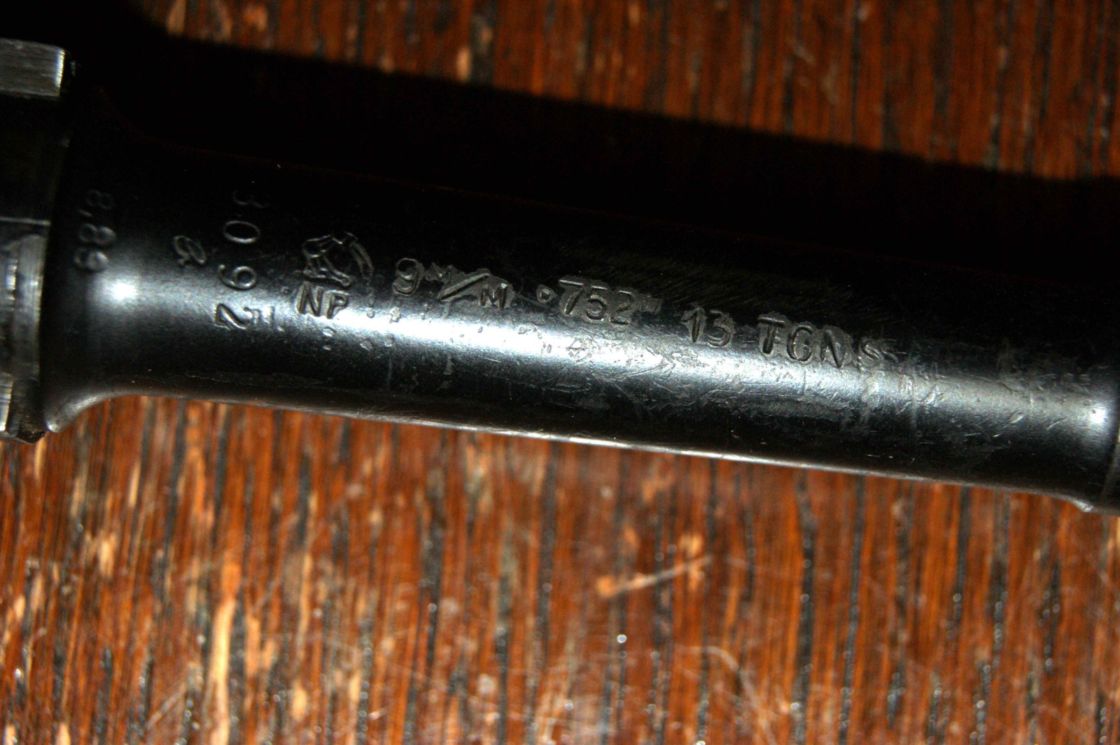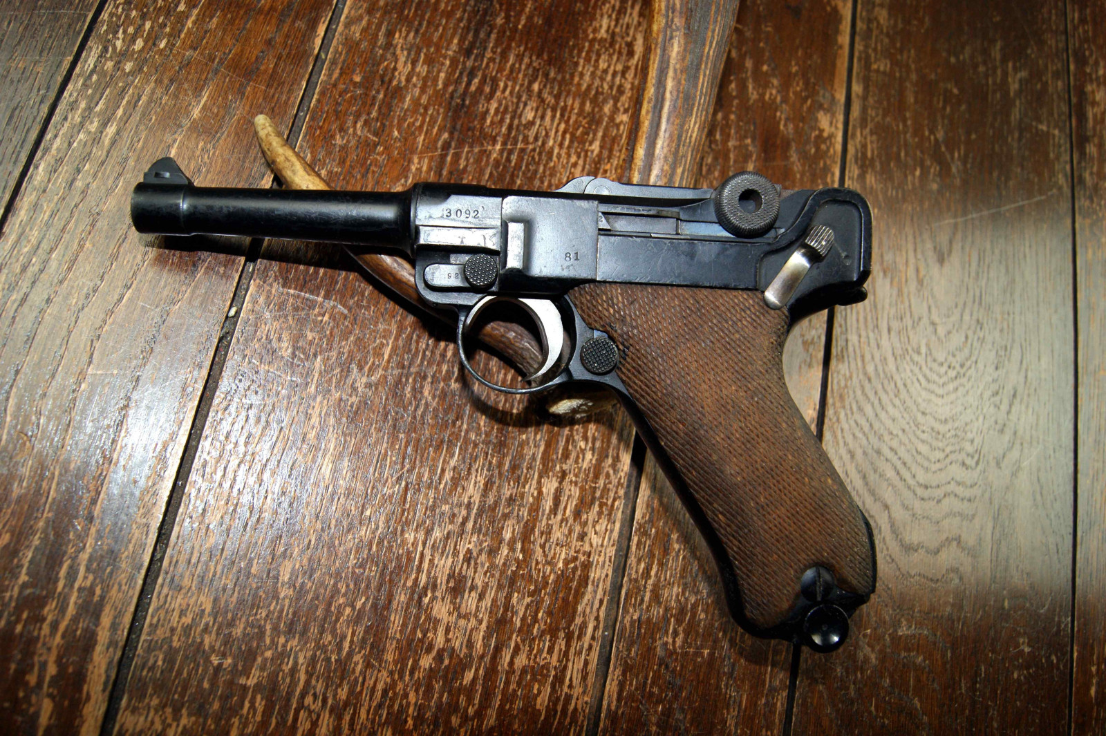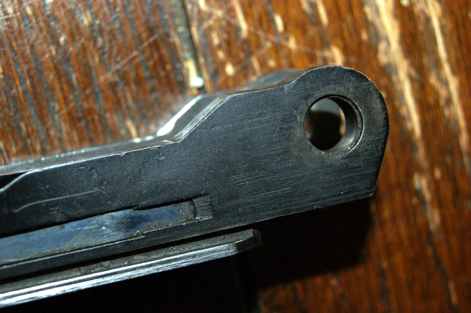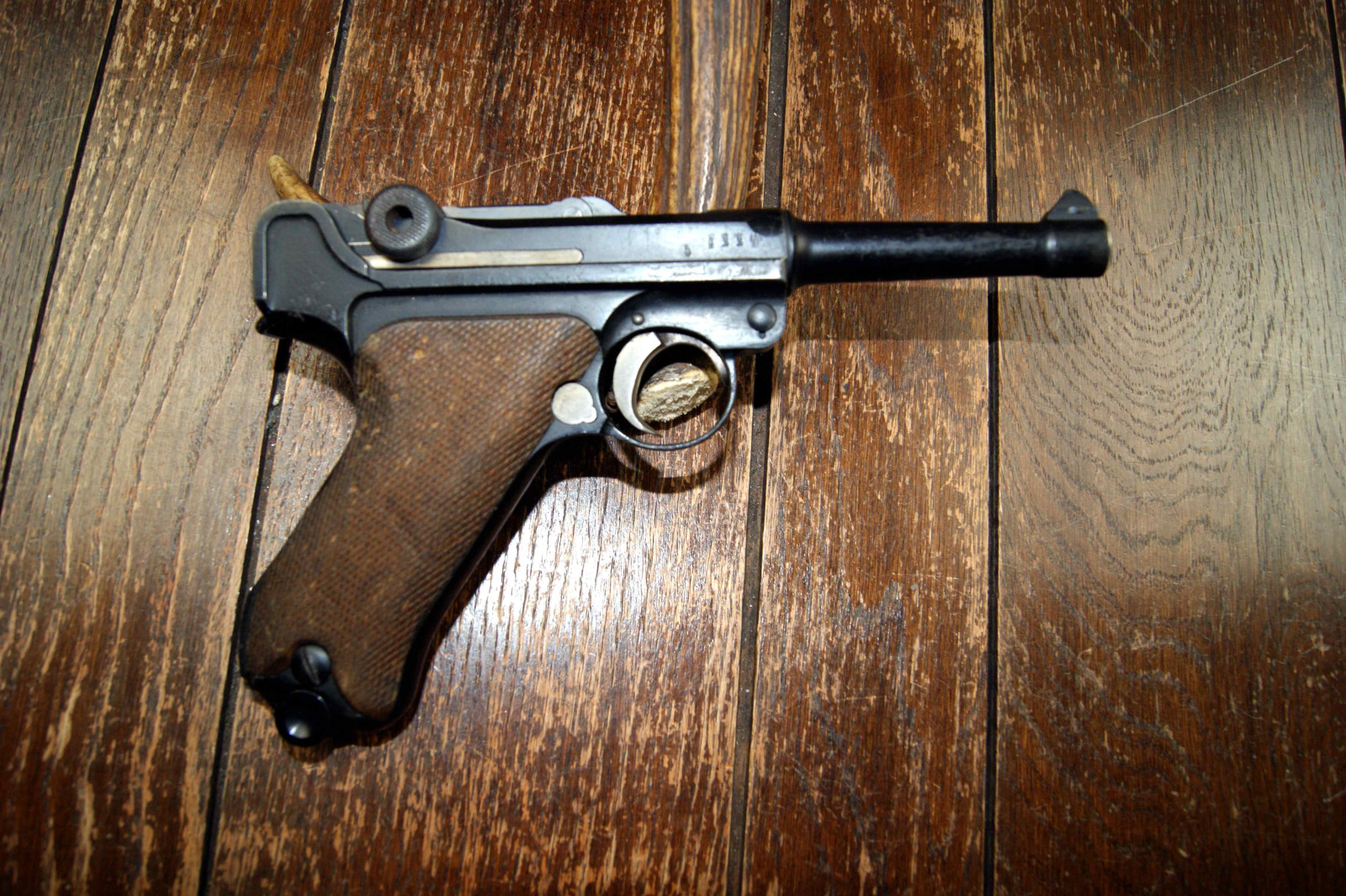 Zum Verkauf kommt ein Opfer vom "Bastelwastel", eine an sich schöne P08, nicht nummerngleich, mit einen ca. 20mm langen Gewinde im Mündungsbereich und ein angefeiltes Gabelstück ( siehe Bilder ), die Waffe hat einen Englischen Beschuß.