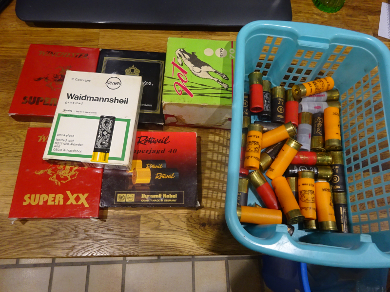 Konvolut von gut 100 Schrotpatronen verschiedener Hersteller Kal. 12/70, meist Rottweil und Winchester, teils lose, teils ovp aus einem Jägernachlass, siehe Foto und mein egun