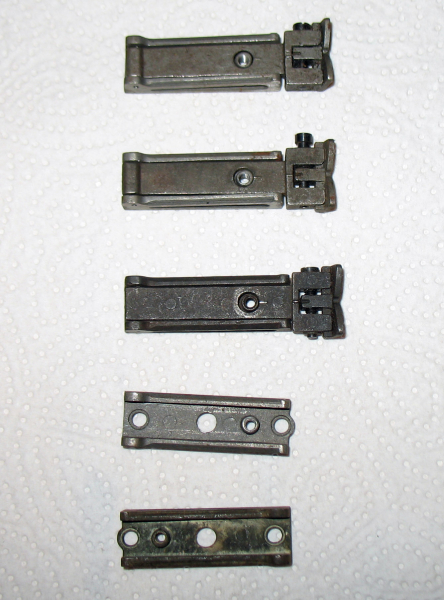 Wie auf dem Foto zu sehen handelt es sich um 3 Oberteile und 5 Unterteile/Halterungen. Schrauben/Stifte/Federn fehlen, soweit nicht abgebildet.
