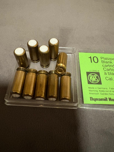 10 Stück Platzpatronen 8mm, 9 Stück mit Weißer Kappe gestempelt Geco eine