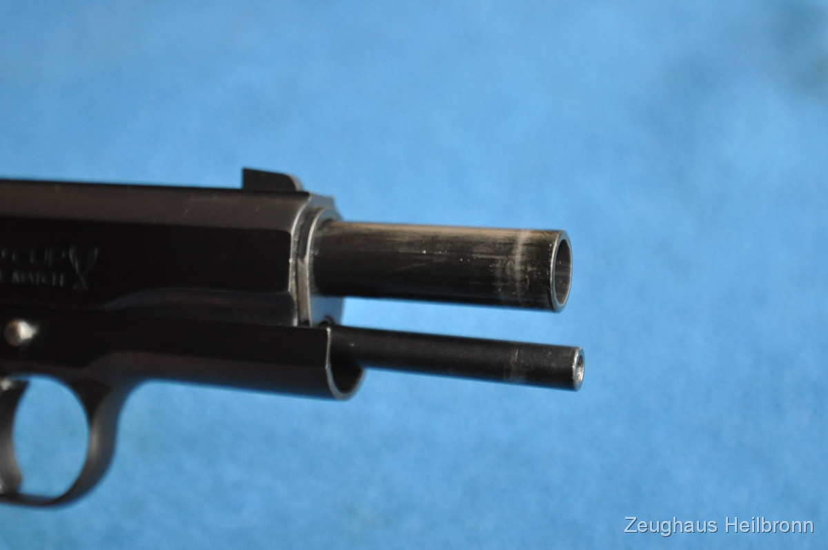 Wurde für das sportliche Schießen überarbeitet, lange Federführungsstange, Beavertail, trocken brechender Abzug.