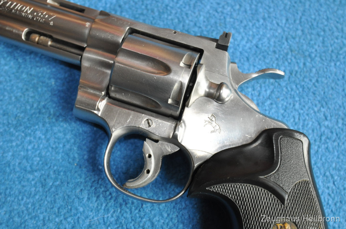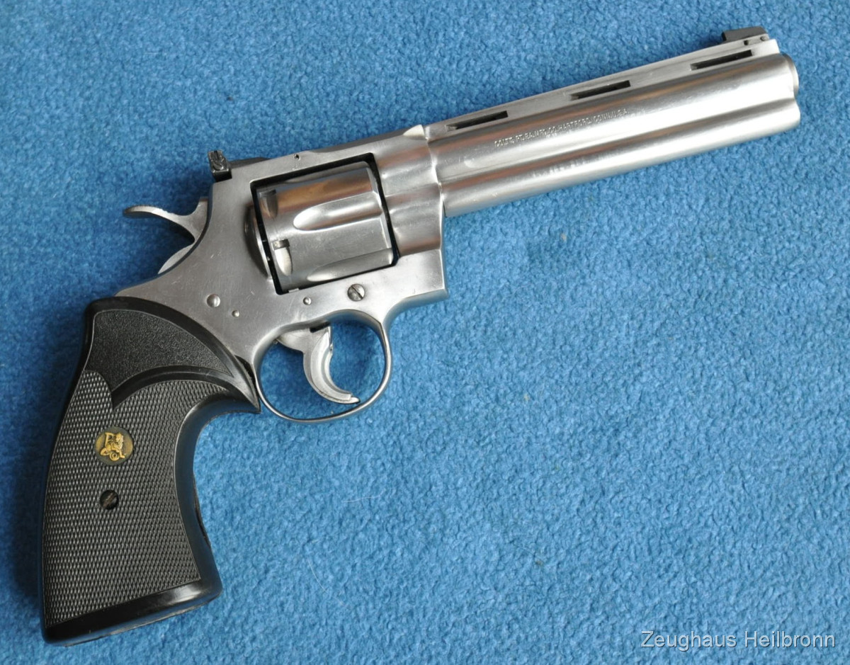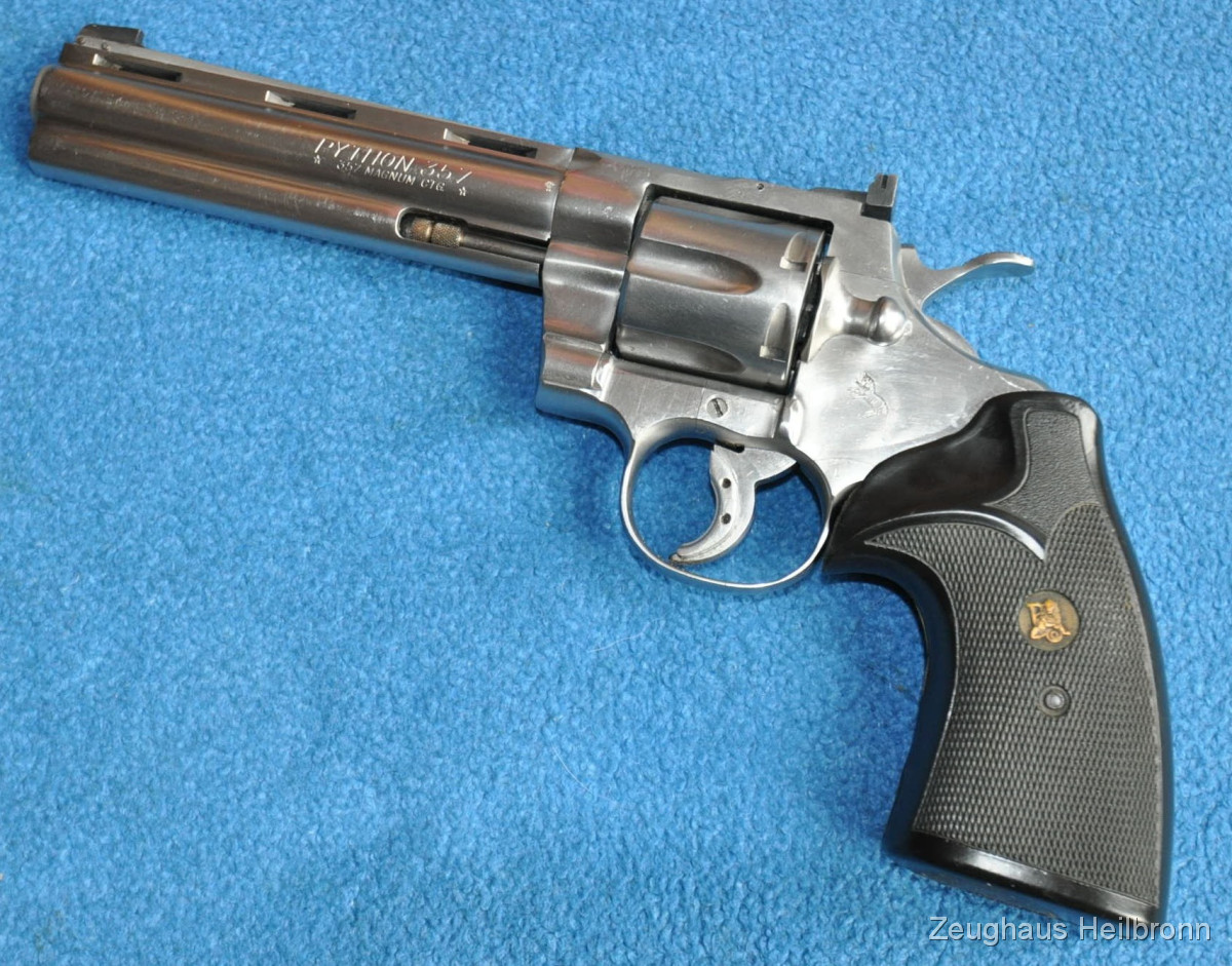 Sehr schöner legendärer Python Revolver in seltener Stainless Ausführung. Waffe wurde für das sportliche Schießen überarbeitet, super weicher Schlossgang bei DA, trocken brechender Abzug. Volle Funktion, Lauf blank.