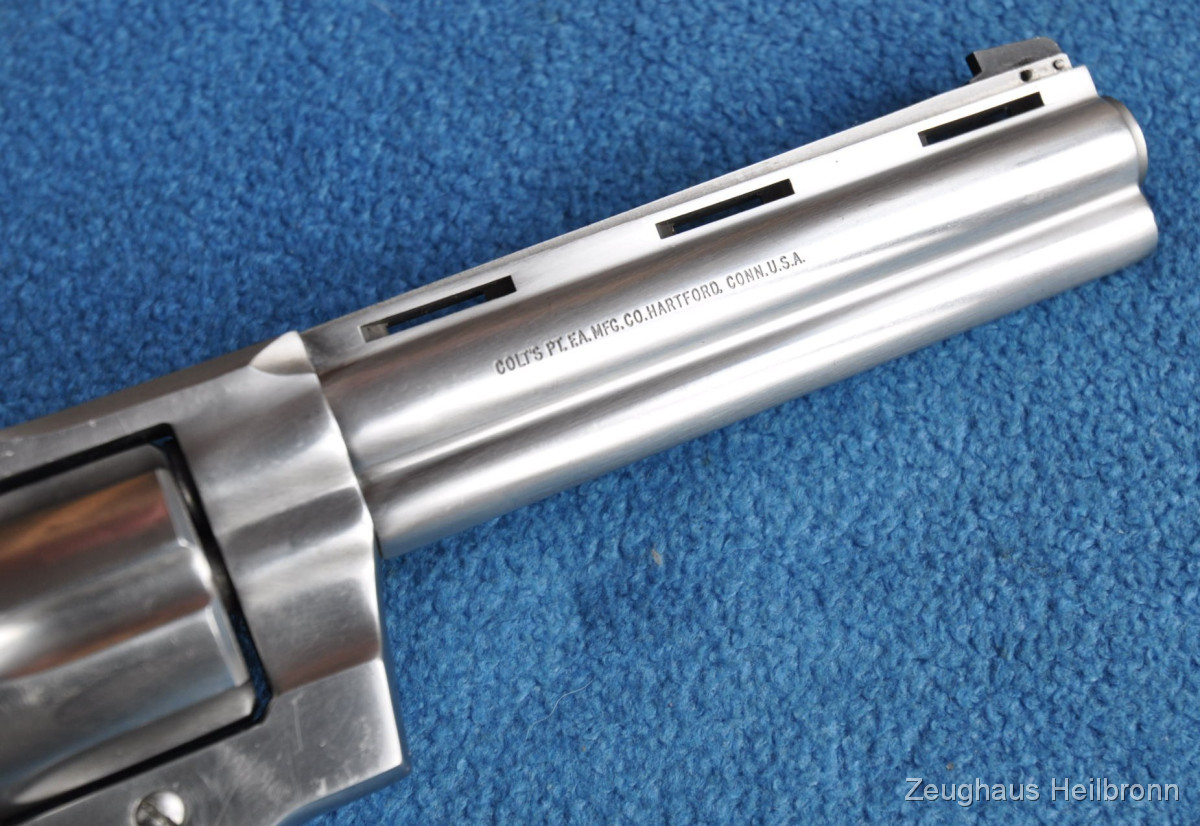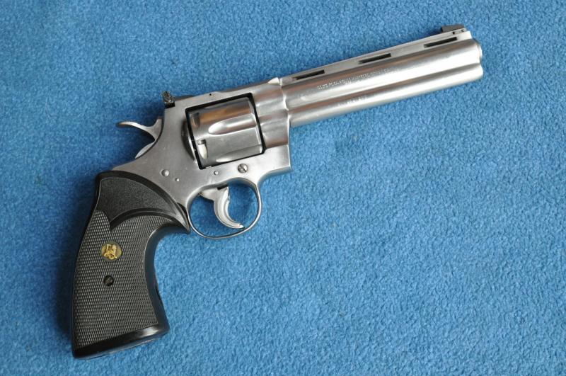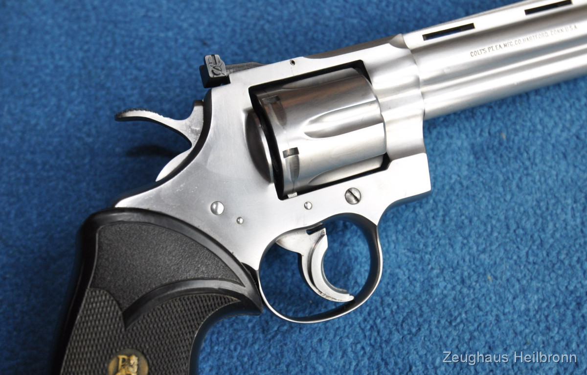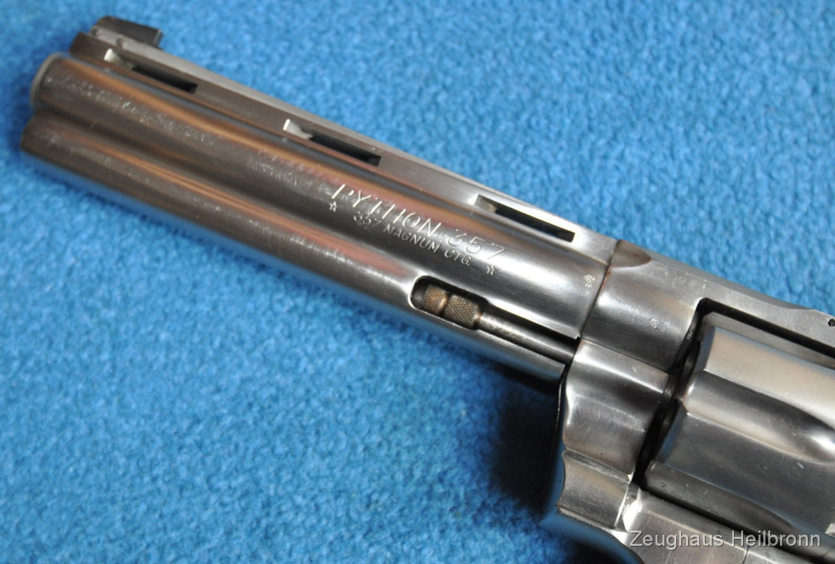 Sehr schöner legendärer Python Revolver in seltener Stainless Ausführung. Waffe wurde für das sportliche Schießen überarbeitet, super weicher Schlossgang bei DA, trocken brechender Abzug. Volle Funktion, Lauf blank.