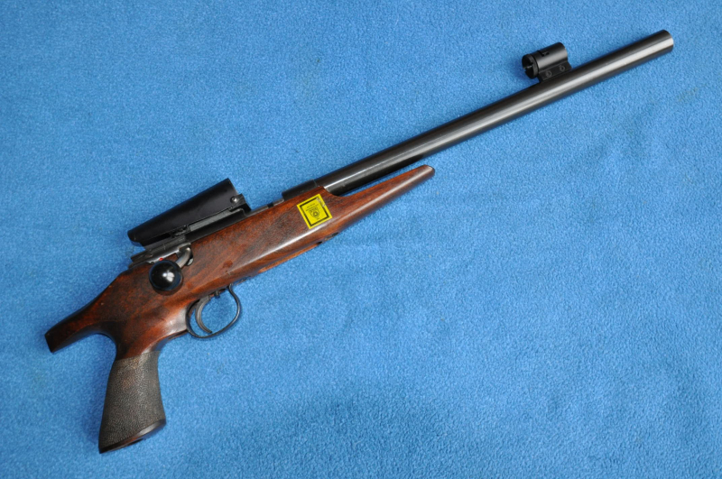 Waffe in einem sehr schönen Zustand, siehe Bilder, Lauf blank, volle Funktion. Wurde aus dem System einer Anschütz Match 1903 gefertigt. Schwerer, 38cm langer Lauf, 23mm Durchmesser.