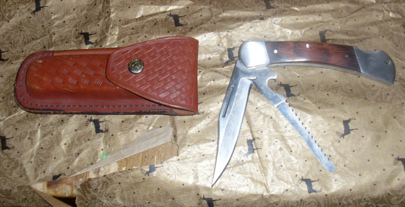 Klappmesser mit Lederscheide und Säge ,Neu aus Geschäftsauflösung
