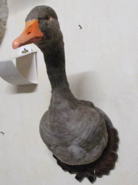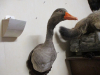 Sie bieten auf ein Kopf Schulter  Präpart einer Graugans auf einem handgeschnitzten Trophäenbrett .