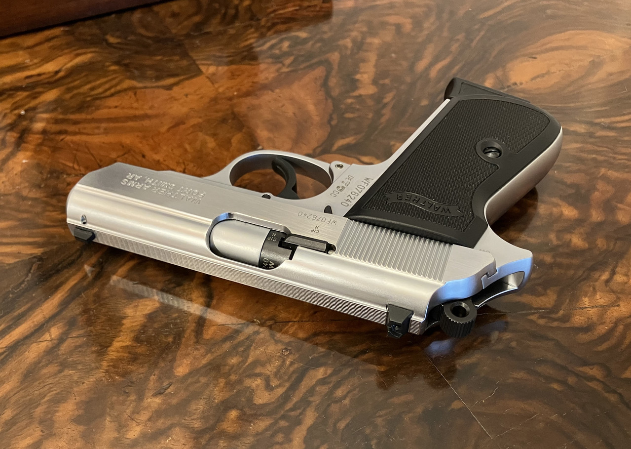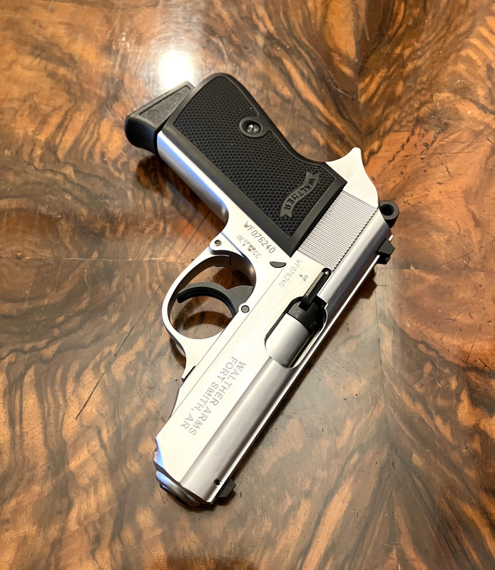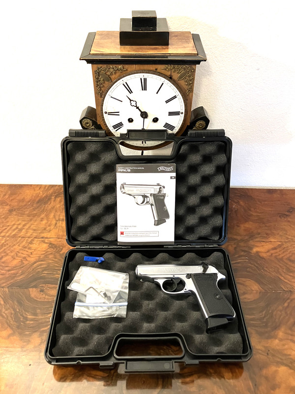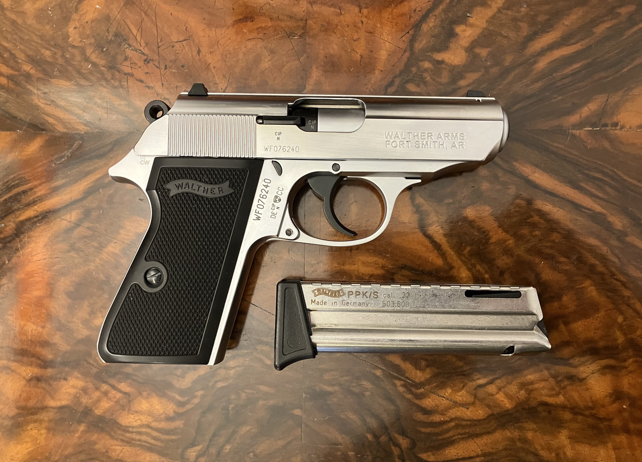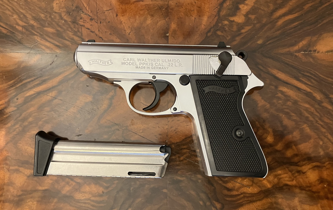 Versteigert wird die abgebildete neuwertige Pistole PPK von Walther in .22 lfb.