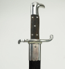 Blanke Klinge, an der Wurzel Herstellersignet Weyersberg, Kirschbaum & Co., Solingen, rückseitig Punze „Erfurt“ mit Krone. Auf der Fehlschärfe Abnahmepunze. Parierstange mit Truppenstempel. Schwarze Griffschalen. Lederscheide mit silbernen Beschlägen, mehrfach gepunzt.