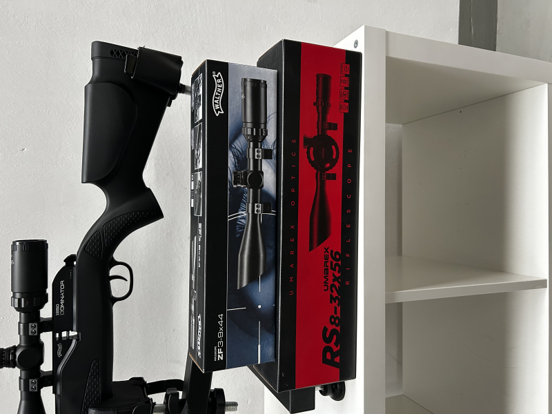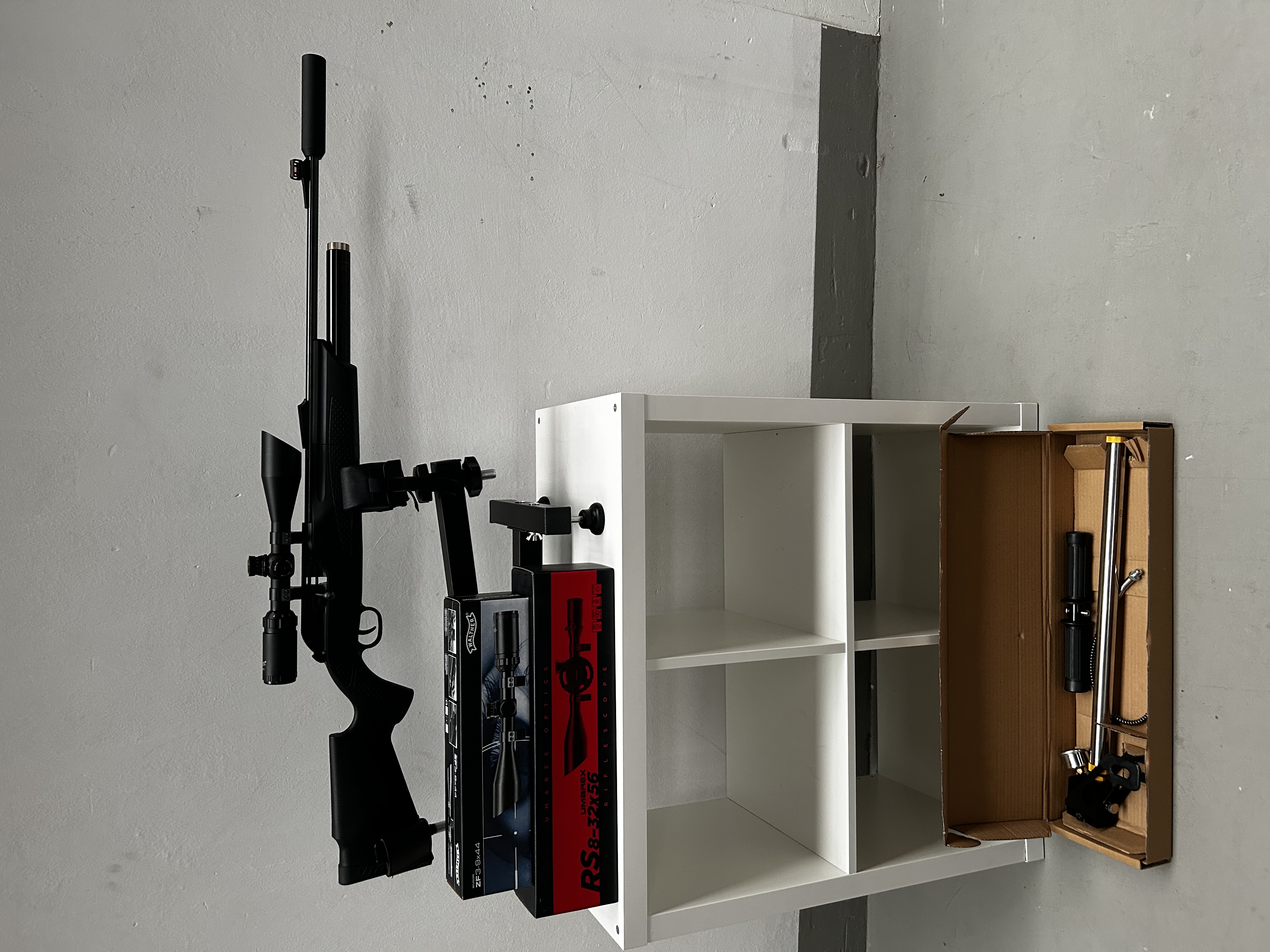 Die Walther 1250 Dominator verfügt über ein Pressluft-Repetiersystem mit 8-Schuss-Trommel. Da der Kammerstängel das Diabolo direkt in den Lauf drückt, ist eine hohe Treffsicherheit auch auf größere Distanzen gegeben. Dank der 300 bar Kartusche lassen sich 400 Schuss pro Füllung abgeben. Kunststoffnoppen an Vorderschaft und Pistolengriff sorgen für einen sicheren Griff im Anschlag. Rechts- wie Linkshänder kommen mit der beidseitigen Monte-Carlo-Backe am glasfaserverstärkten Kunststoffschaft bestens zurecht. Hier als Field-Target-Variante mit Zielfernrohr 8-32x56, sowie Zielfernrohr ZF 3-9x44 von Walther und Schalldämpfer, sowie Handpumpe. Das Gewehr wird Verkauft, da ich jetzt einen Jagdschein habe und auf andere Waffen umsteigen möchte. Der Zustand ist neuwertig und das Montierte 3-9x44 ZF ist auf 20 Meter eingeschossen. Das Größere ZF liegt im Original Karton dabei. Das ganze Set befindet sich in einem Futteral und wird nur komplett verkauft. Das Gewehr wurde im PW Store erworben und hat auch noch mehr als 12 Monate Garantie. Bevorzugt wird eine Abholung in 5622 Urmitz oder in 56457 Halbs. Versand bei Kostenübernahme aber auch möglich.
