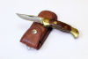 Ergonomisch strukturierter Griff. Die Griffmontur aus poliertem Messing. Das Messer mit Back-Lock Verschluss. Daumenmulde des Mechanismus auf dem Griffrücken. Die Griffschalen aus fein gemasertem Edelholz. Eingelegte Messingmarke mit der Bezeichnung "SOLINGEN" quartseitig.