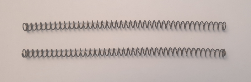 P38 / P1 Verschlussfedern, 1 Paar, neu (NOS), unbenutzt. Passen auch in die baugleiche Heerespistole (HP) oder Wehrmachts-P.38.