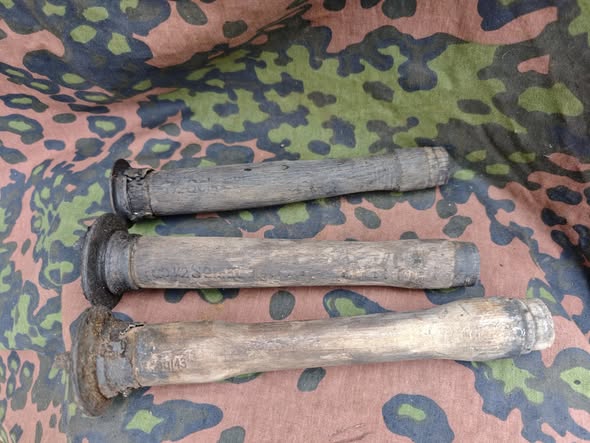 Angeboten werden originale Holzstiele der deutschen M24 Stielhandgranate aus dem Zeitraum des Zweiten Weltkriegs.