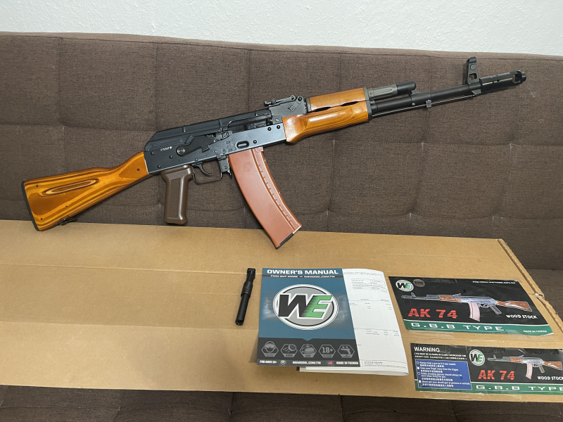 Nagelneues WE AK74 Airsoft Sturmgewehr. WE Tech ist einer der qualitativ besten Airsoft Hersteller und das Gas System ist sehr gut. Besser als eine Yunker! Bei jedem Schuss repetiert das Gewehr wie beim echten Vorbild. Auch das zerlegen ist nahe am Original. Genauso die Materialien, wie beim echten Vorbild viel Stahl, Stahlblech, Echtholzteile - wunderschön. Absoluter Spielspass garantiert. F-Kennzeichen - Halbautomat, Zugelassen in Deutschland ab 18 Jahre. Verkauf nur an Personen über 18 Jahre mit Altersnachweis. Das Gewehr ist neuwertig, diente nur als Deko für Liebhaber, nur zum Test wurde kurz damit geschossen um die einwandfrei Funktion festzustellen. Kaufen, wer weiß wie lange noch die Teile zu haben sind - kann auch als Wertanlage gesehen werden. Gekauft vor ca. 1 Jahr bei K&Z - Gewehr kommt mit Rechnung und Orginalverpackung. DHL Versand unmittelbar nach Zahlungseingang. Beachtet bitte meine AGB unten.
