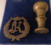 Zum Angebot gehören eine Messing Petschaft mit Initialen sowie einem Mützenabzeichen aus Buntmetall mit gleichen Initialen. Zudem gehört das original Fernglas des Soldaten zum Angebotsumfang.