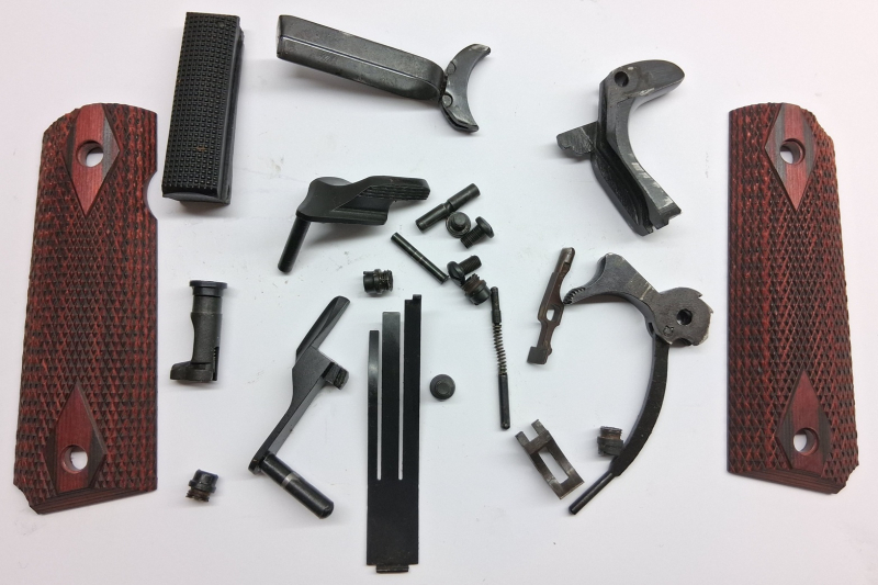 Angeboten ist ein Konvolut Ersatzteile Kleinteile für Pistole 1911 cal. .45 Auto mit normalem Rahmen.