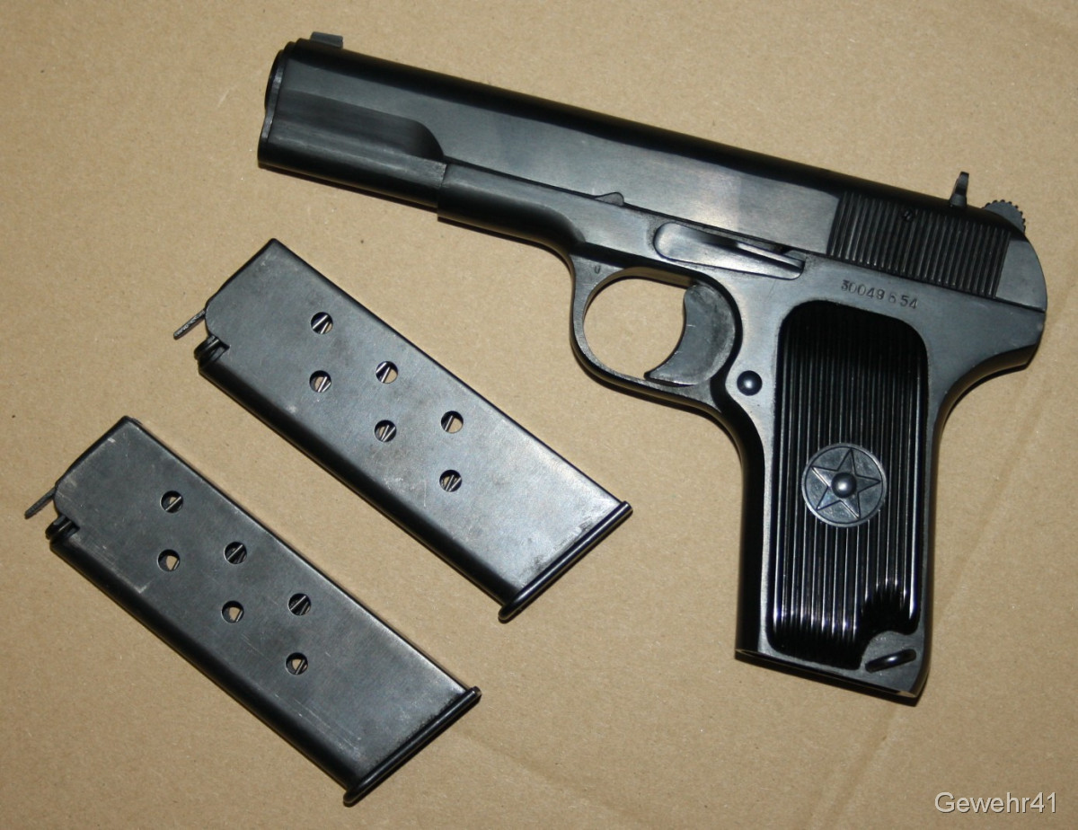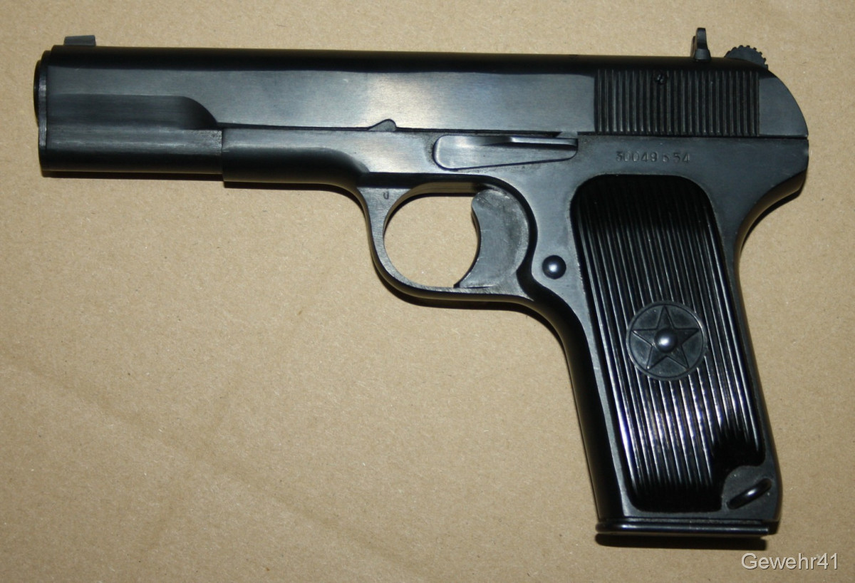 Sie bieten auf diese Tokarev TT33 im Kal. 7,62x25. Die Pistole ist im absolut neuwertigen, sehr schönen Zustand und nrgl. Inkl. 2 nrgl. Magazine! Der Lauf ist einwandfrei, die Funktion auch. Mit gültigem Beschuss, daher für Sammler und Sportschützen interessant.