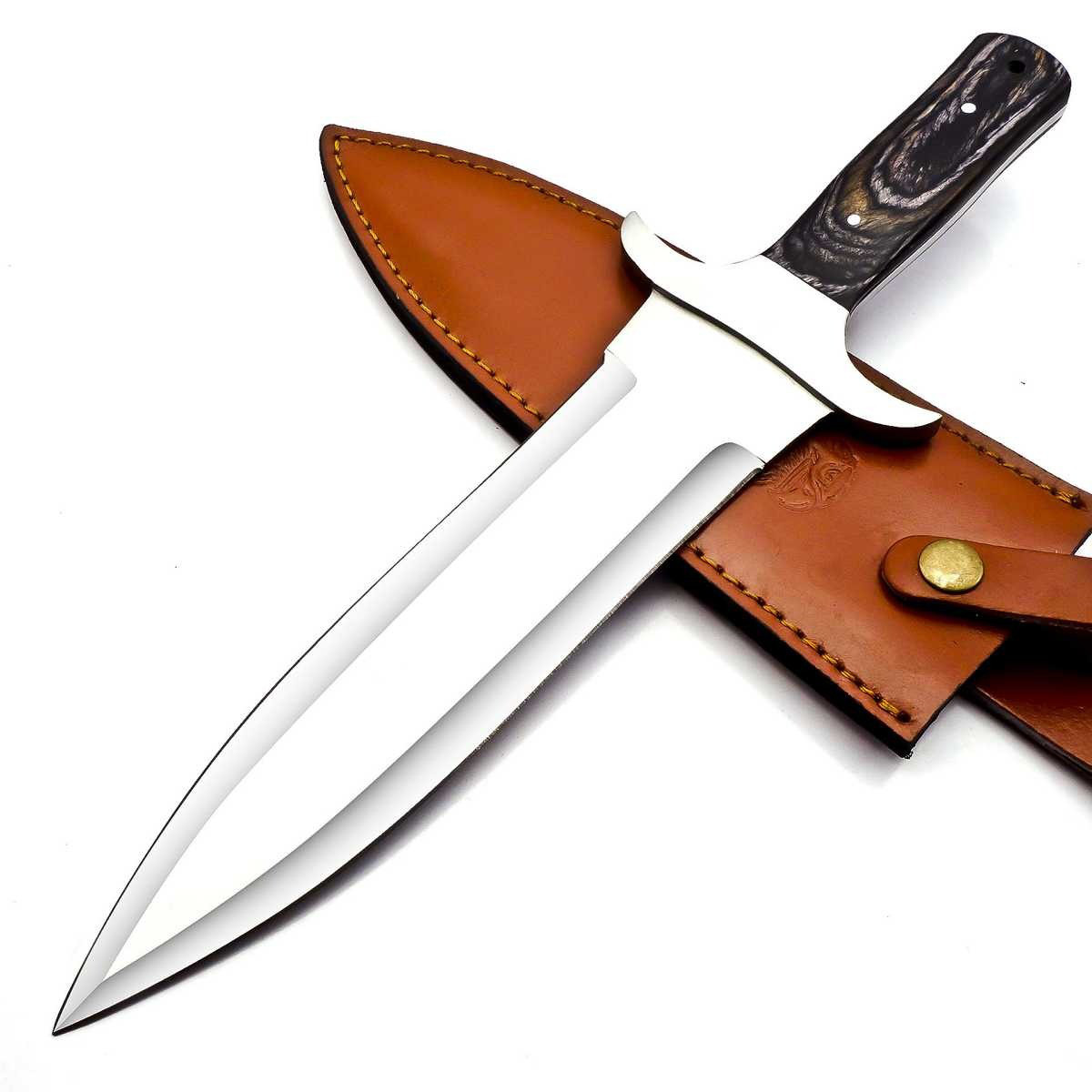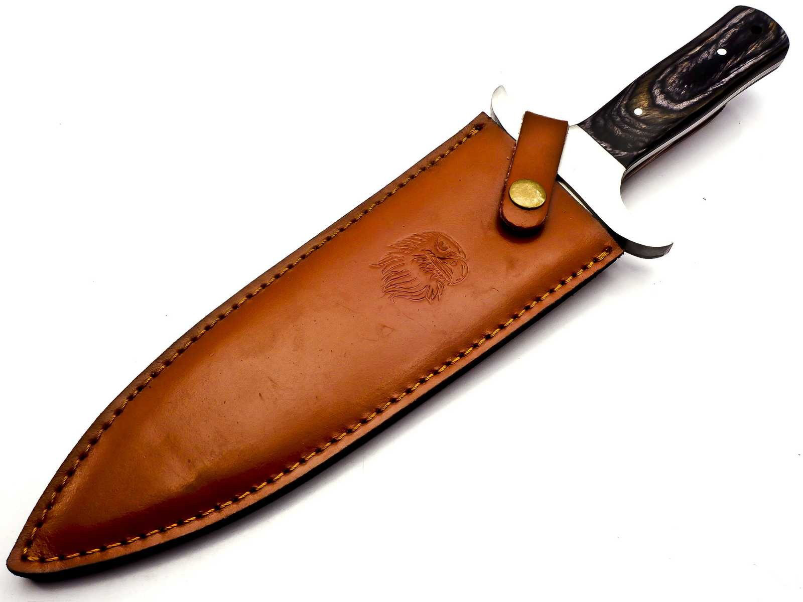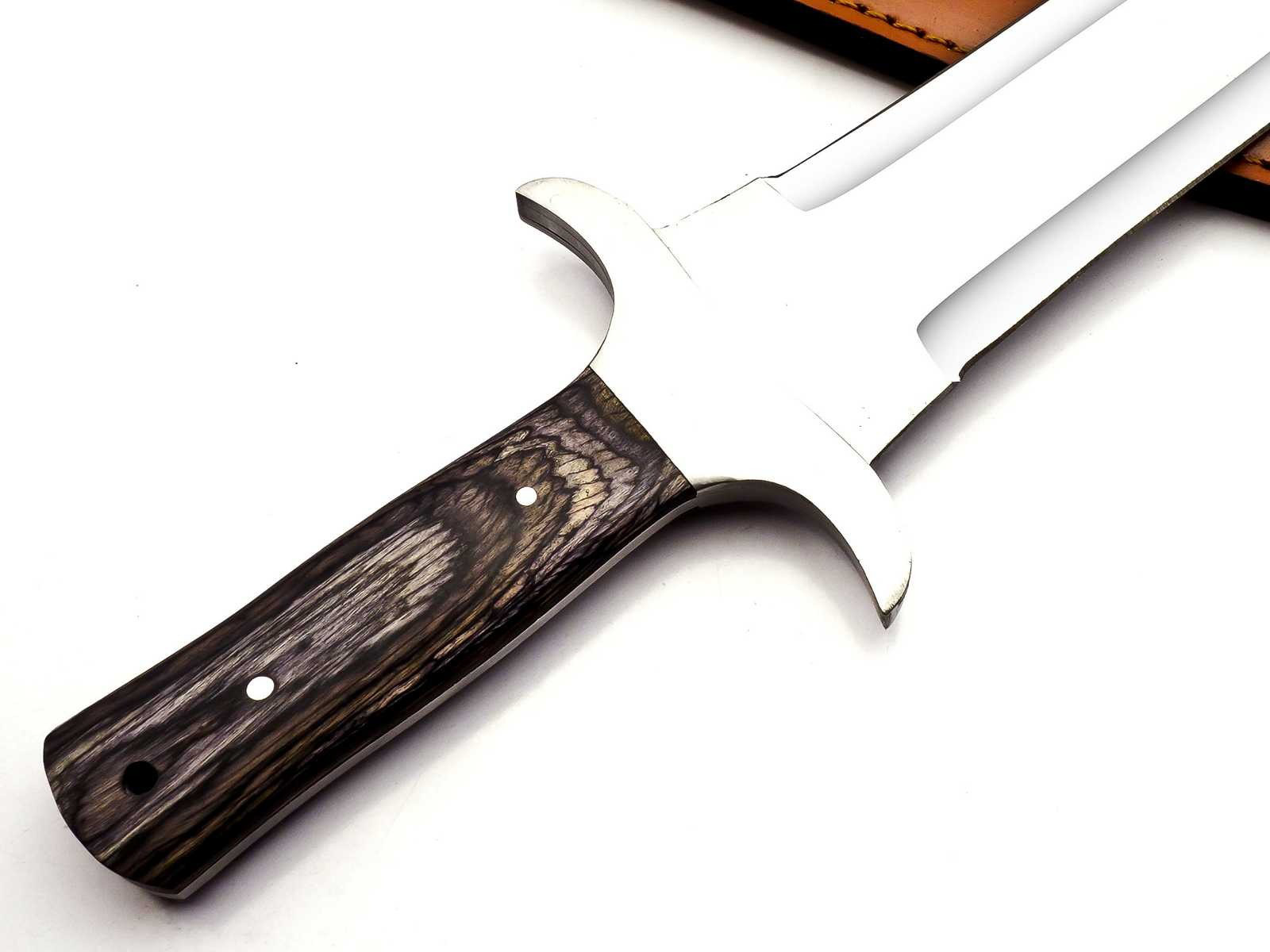 Die ebenfalls handgefertigte Lederscheide besteht aus hochwertigem Rindleder.