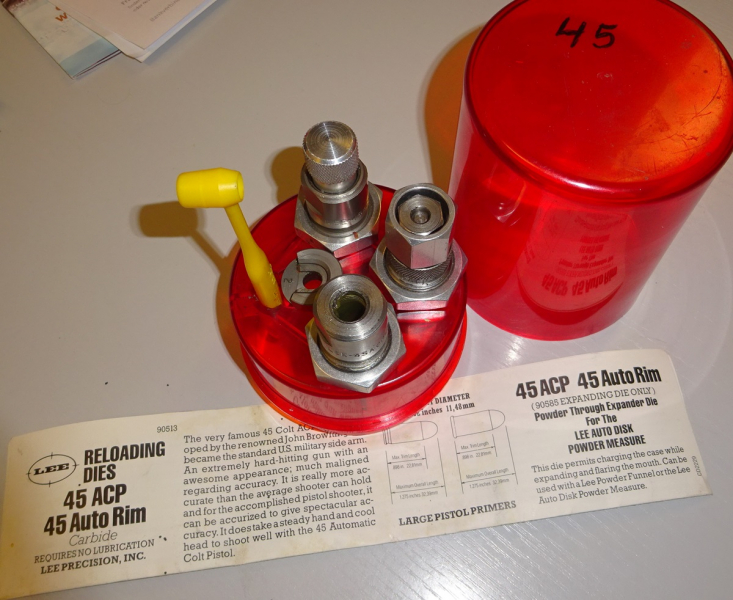Aus Nachlass. Sehr guter, gepflegter Zustand. Passt auch für .45AutoRim. Die Gewinde der Matrizen passen für die RCBS RockChucker (und auch für alle Lyman Pressen.)