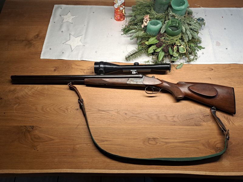 Zum Verkauf steht ein gut erhaltener Suhl Drilling im Kaliber 7x65 R, 16/70. Zusätzlich verfügt der Drilling über einen Einstecklauf im Kaliber 22. Hornet. Als Optik ist ein Schmidt & Bender 8x56 Zielfernrohr fest verbaut. Die Waffe ist technisch in tadellosem Zustand, ebenso die Schussleistung. Die Waffe weist leichte, normale Alltagsgebrauchsspuren auf. Es handelt sich um einen Privatverkauf, Rücknahme und Gewährleistung sind ausgeschlossen.