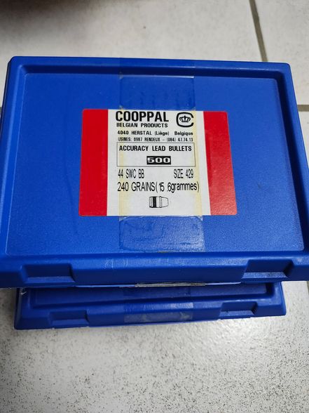 Verkaufe 1000 Stück, neue Cooppal-Geschosse .44/.429, 240 grain, SWC BB, Bleigeschosse, kalibriert und gefettet. Originalverpackt.