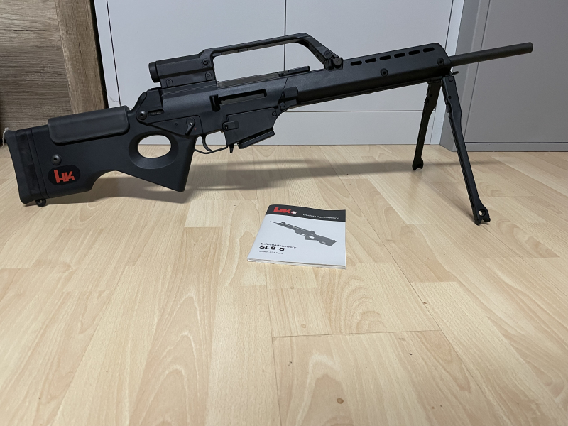 Verkaufe hier eine Heckler & Koch SL8-5 cal 223 mit Tragegriff/optik Standbein H&K SL 8. Die Waffe hatte ich damals neu gekauft mit Tragegriff und eingebauter Optik sowie originales H&K Standbein und natürlich originales Handbuch. Die Waffe ist in einen guten Zustand.